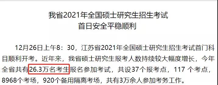 江蘇省教育考試院:2021年江蘇省共有26.3萬(wàn)名考生報(bào)名參加考試。