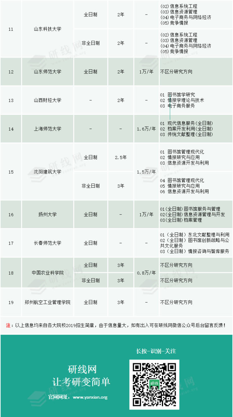 今天,社科賽斯考研網(wǎng)為同學整理了2019年審計碩士(MAud)新增院校項目信息(13所)、2019年圖書情報碩士(MLIS)新增院校項目信息(19所)以及全國圖書情報碩士(MLIS)項目信息概括一覽表和全國審計碩士(MAud)項目信息概括一覽表,快來看看有沒有你需要的信息吧——