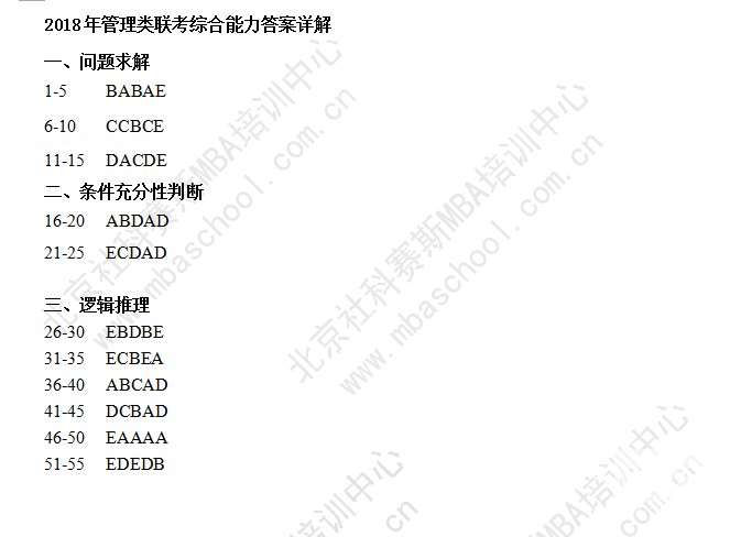 2018年全國(guó)碩士研究生管理類(lèi)聯(lián)考綜合試題答案解析