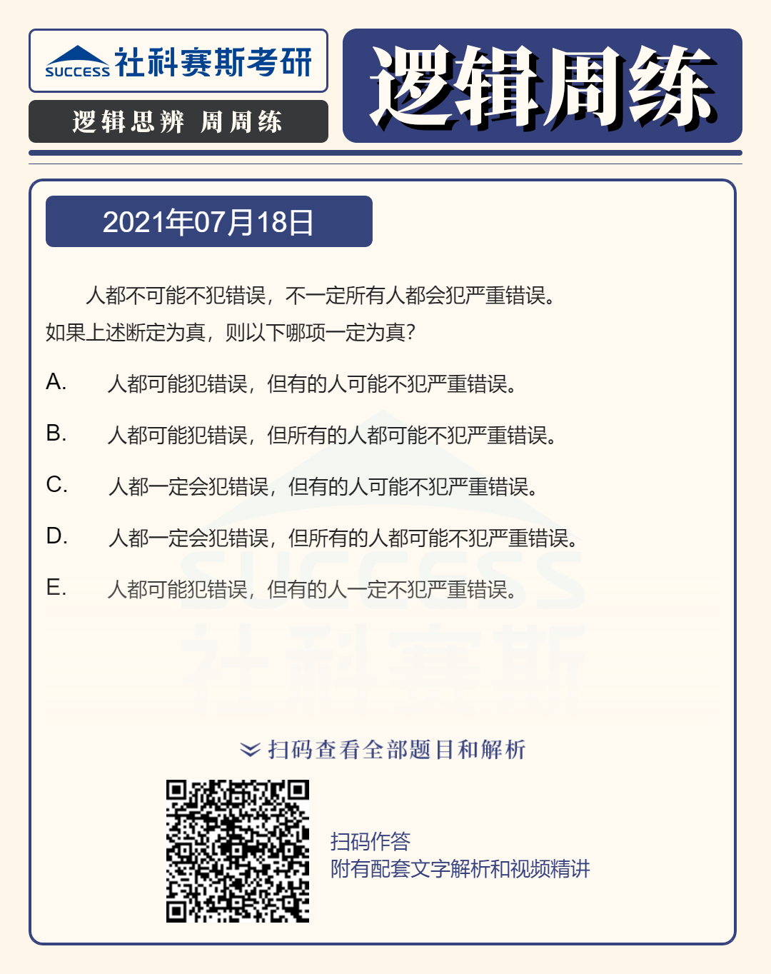 邏輯思辨周周練,考研邏輯專項練習,攻克邏輯難關(guān)!今天社科賽斯考研網(wǎng)小編整理了“邏輯專項練習:7月18日邏輯專項練習及答案”,希望能對廣大考生有所幫助!