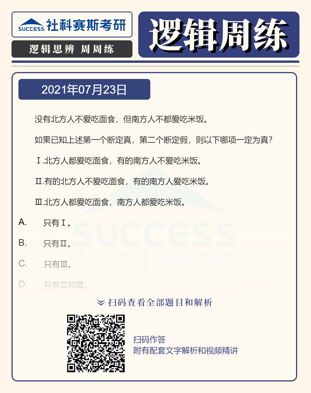 以上就是社科賽斯考研網(wǎng)小編為大家整理邏輯專項練習(xí):7月23日邏輯專項練習(xí)及答案的全部內(nèi)容,希望各位考生堅持利用起來,想要獲取更多內(nèi)容請持續(xù)關(guān)注社科賽斯考研網(wǎng)。