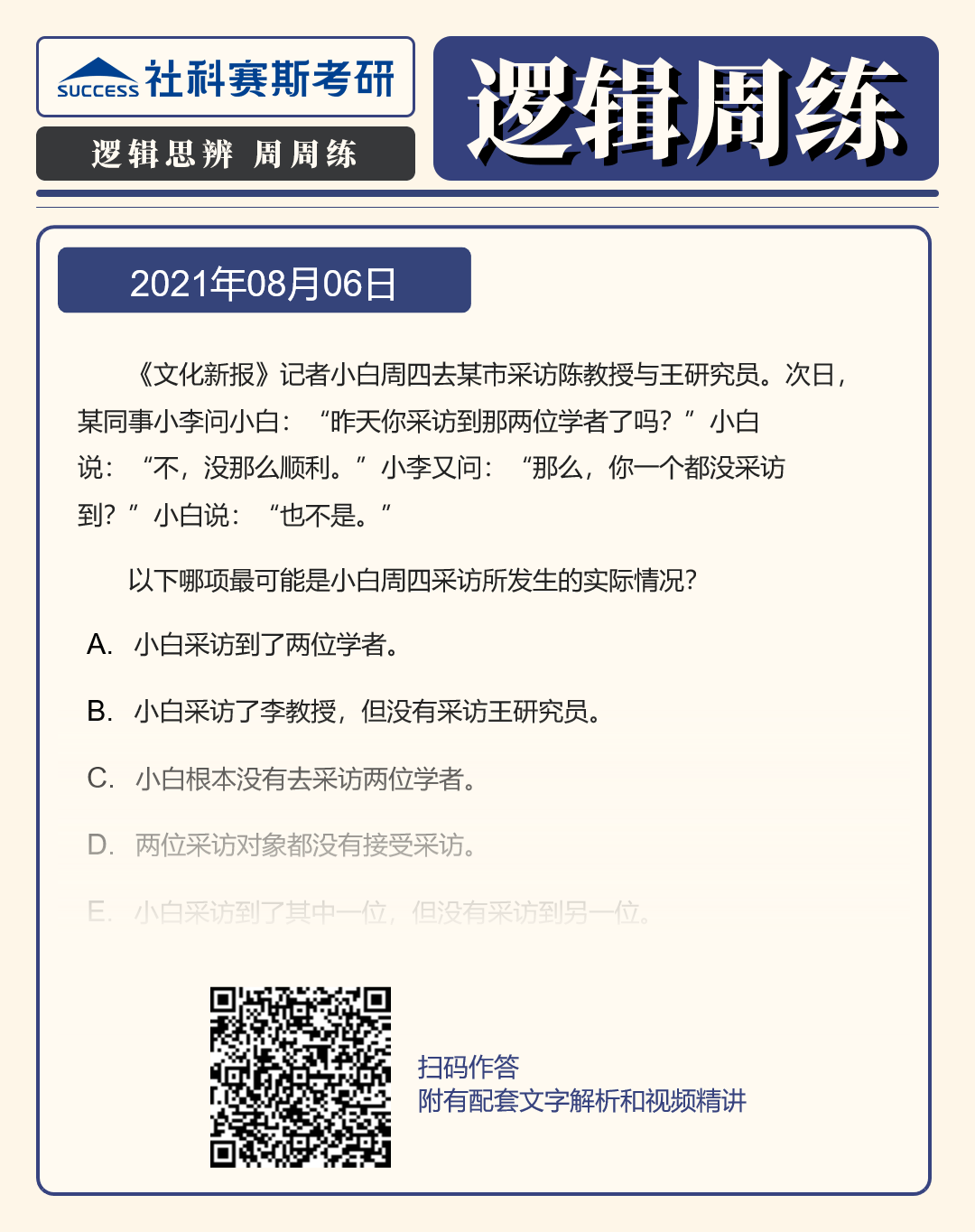 邏輯思辨周周練,考研邏輯專項練習,攻克邏輯難關!今天社科賽斯考研網(wǎng)小編整理了“邏輯專項練習:8月6日邏輯專項練習及答案”,希望能對廣大考生有所幫助!