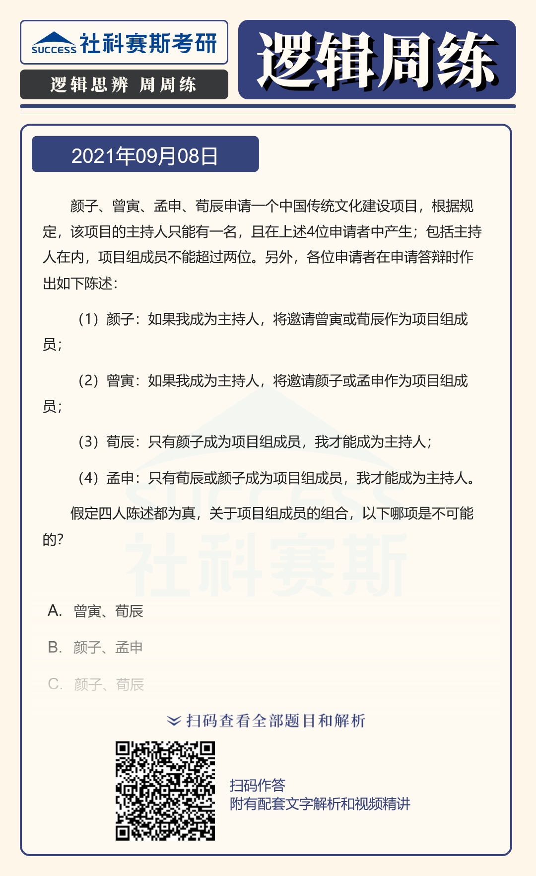以上就是社科賽斯考研網(wǎng)小編為大家整理邏輯專項(xiàng)練習(xí):9月8日邏輯專項(xiàng)練習(xí)及答案的全部?jī)?nèi)容,希望各位考生堅(jiān)持利用起來,想要獲取更多內(nèi)容請(qǐng)持續(xù)關(guān)注社科賽斯考研網(wǎng)。