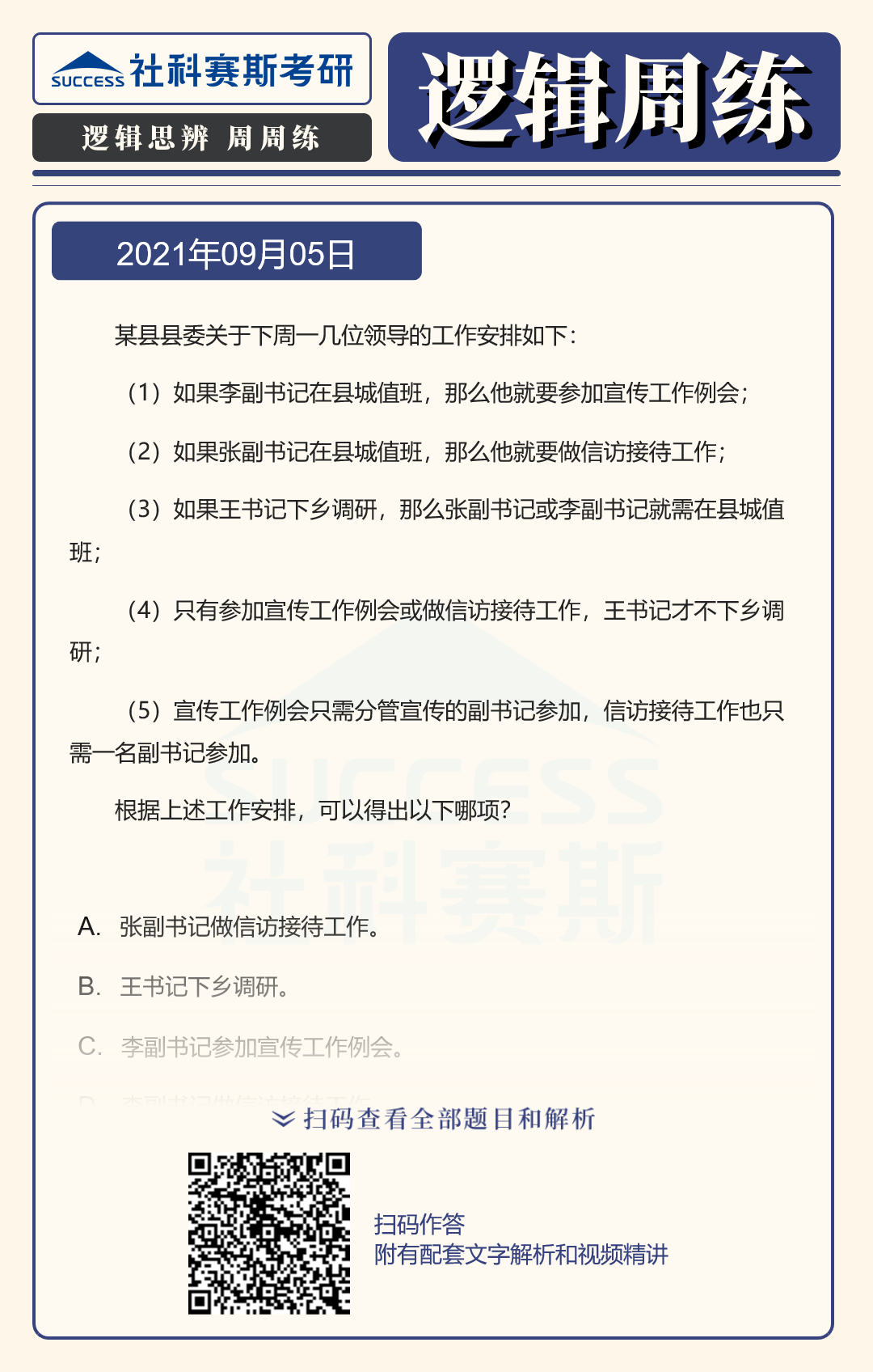 邏輯思辨周周練,考研邏輯專(zhuān)項(xiàng)練習(xí),攻克邏輯難關(guān)!今天社科賽斯考研網(wǎng)小編整理了“邏輯專(zhuān)項(xiàng)練習(xí):9月5日邏輯專(zhuān)項(xiàng)練習(xí)及答案”,希望能對(duì)廣大考生有所幫助!