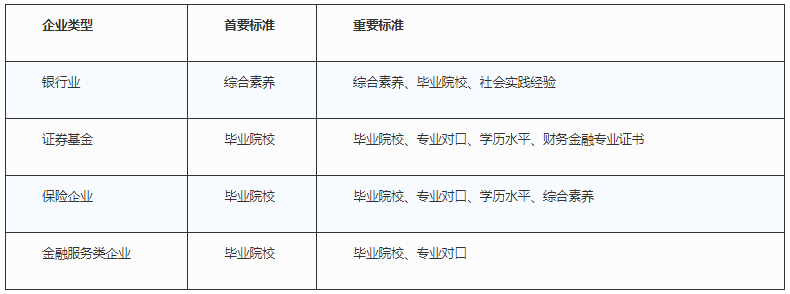 表4 金融行業(yè)校招選拔的重要標(biāo)準(zhǔn)