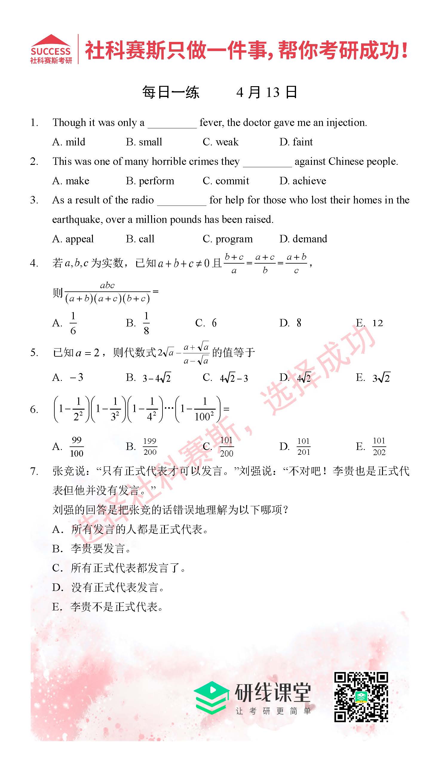 當(dāng)前位置: 聯(lián)考綜合 > 模擬試題 > 2021管理類聯(lián)考4月13日每日一練及答案