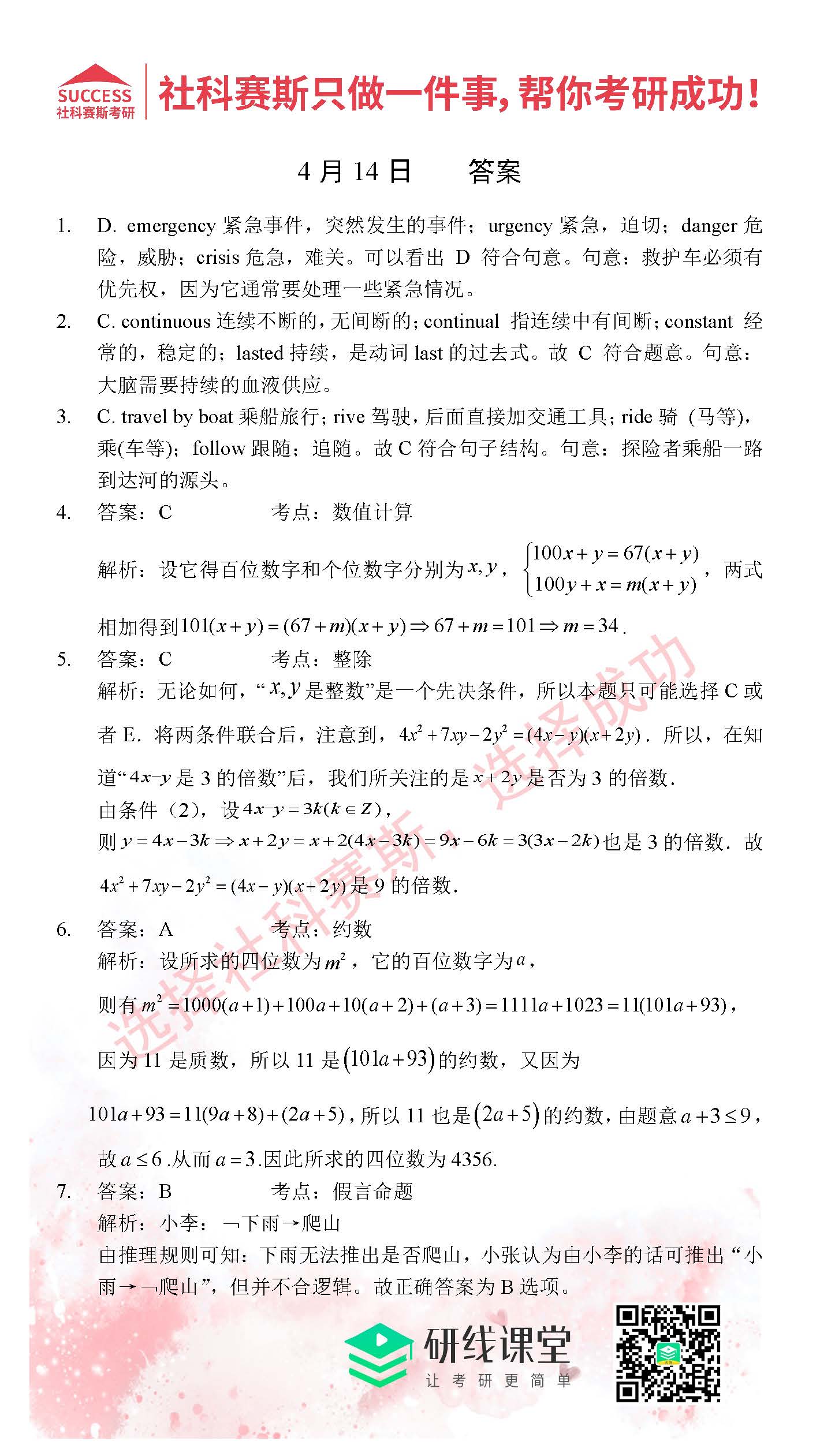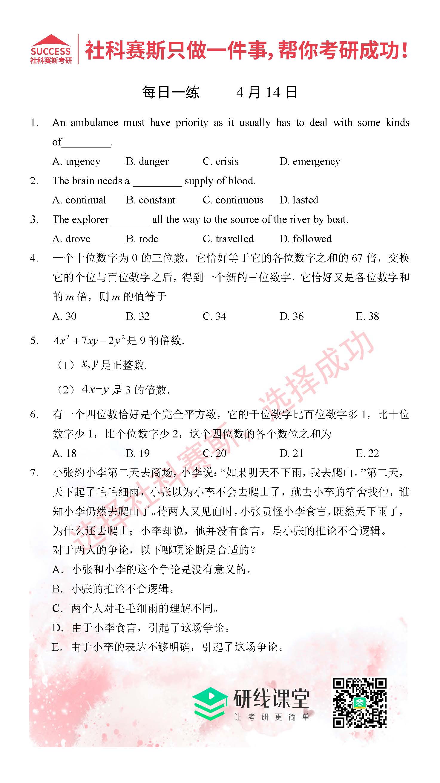 2021管理類聯(lián)考4月14日每日一練及答案