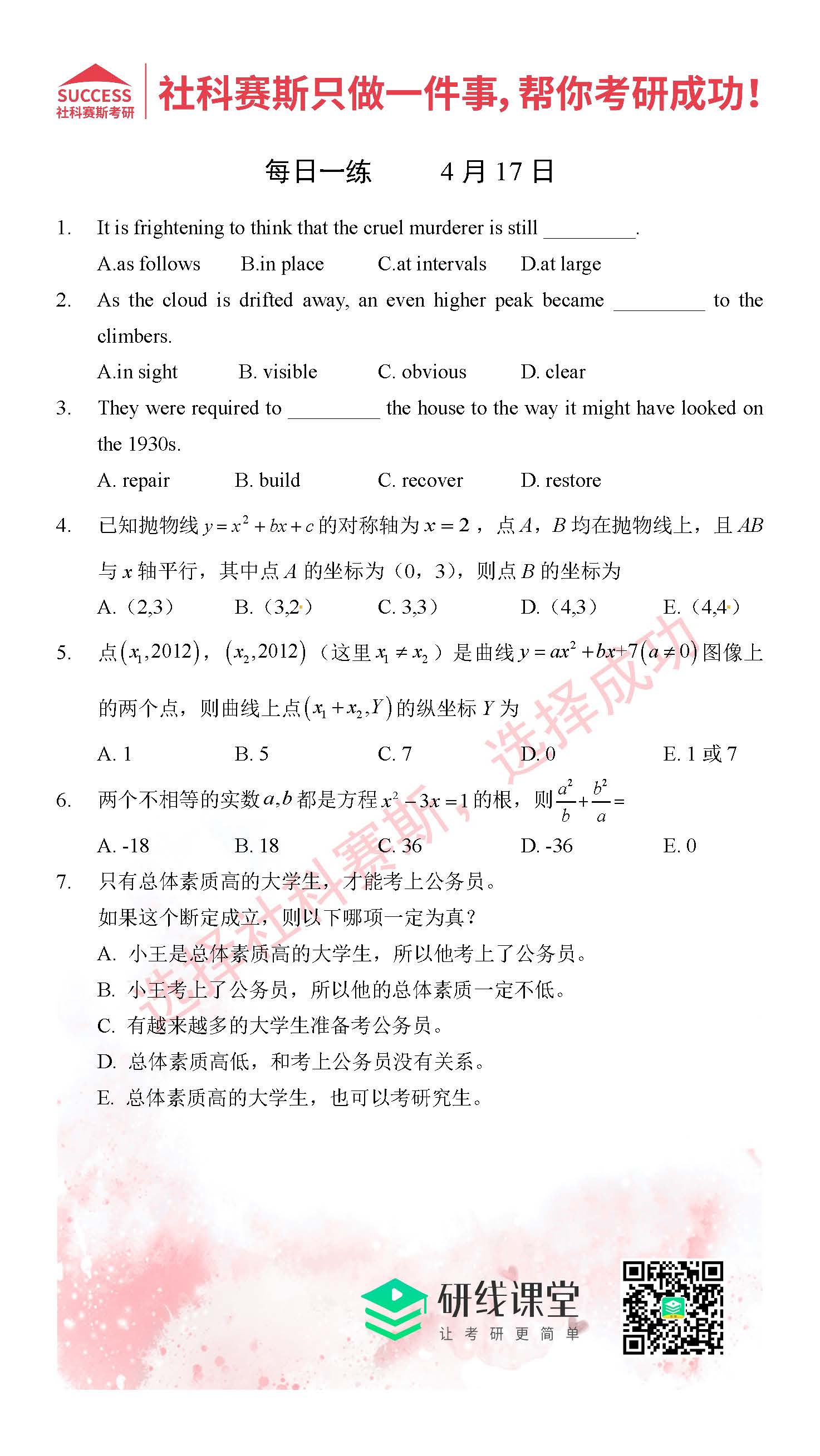 當(dāng)前位置: 聯(lián)考綜合 > 模擬試題 > 2021管理類聯(lián)考4月17日每日一練及答案