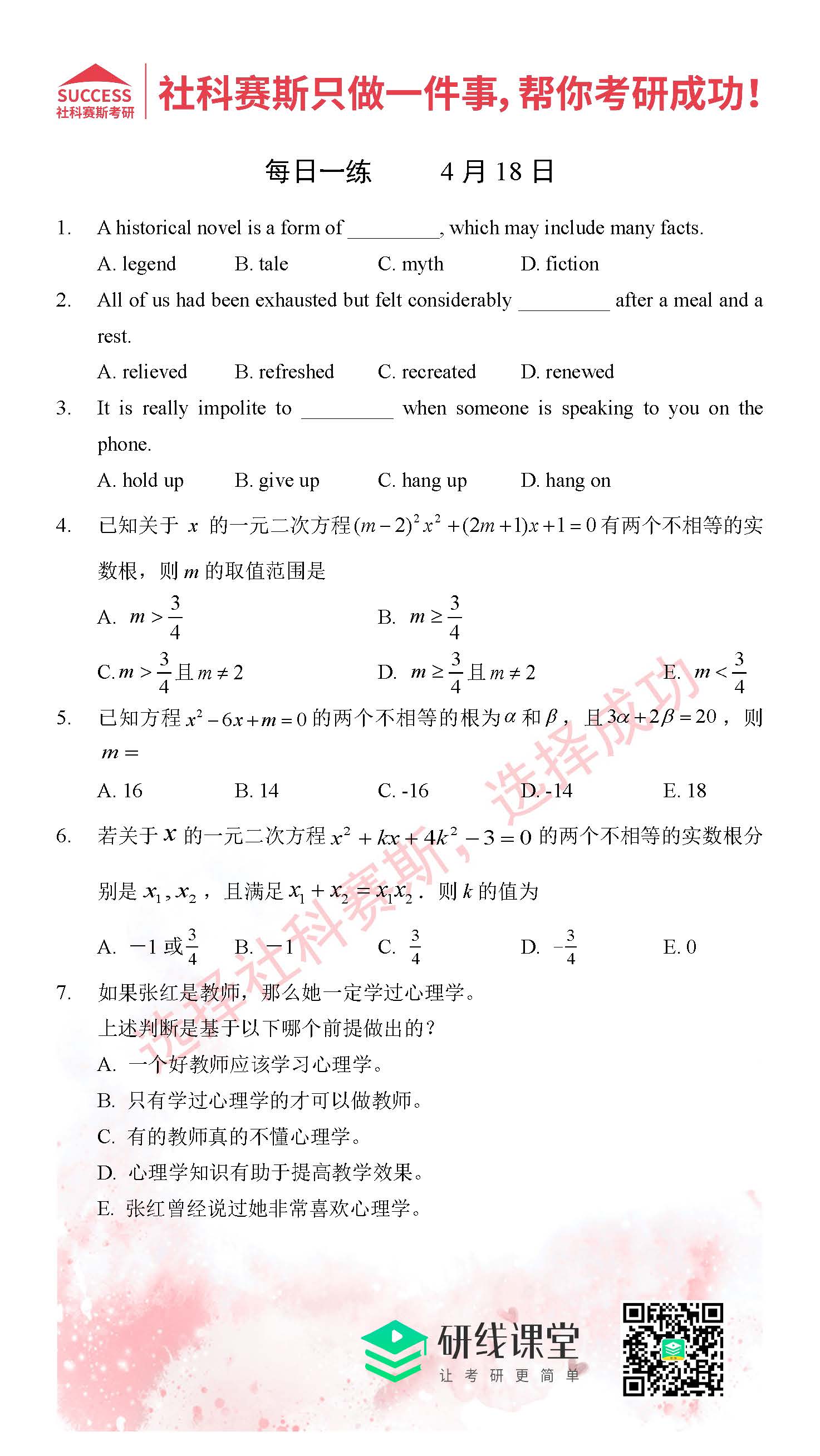 2021管理類(lèi)聯(lián)考4月18日每日一練及答案