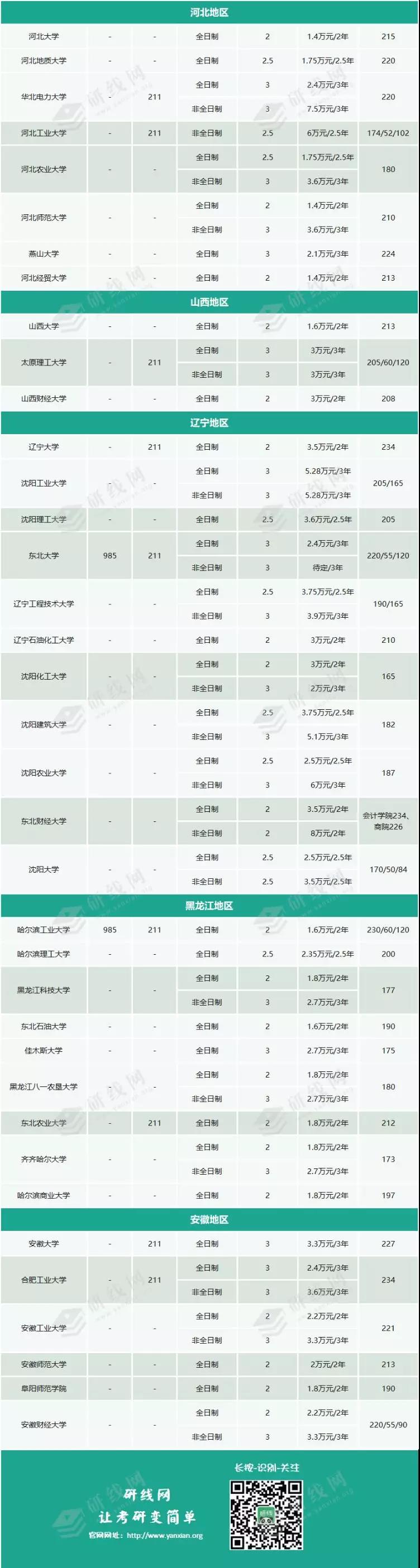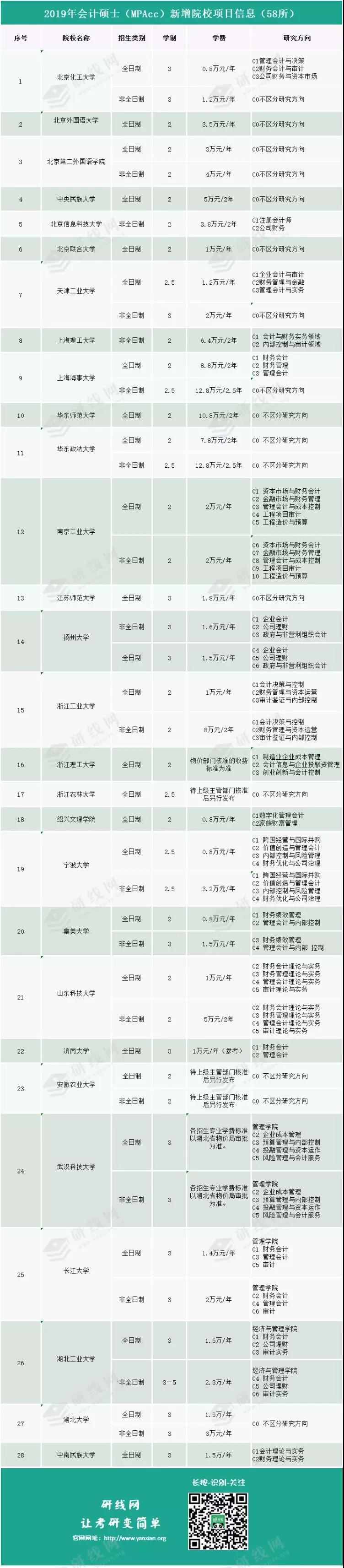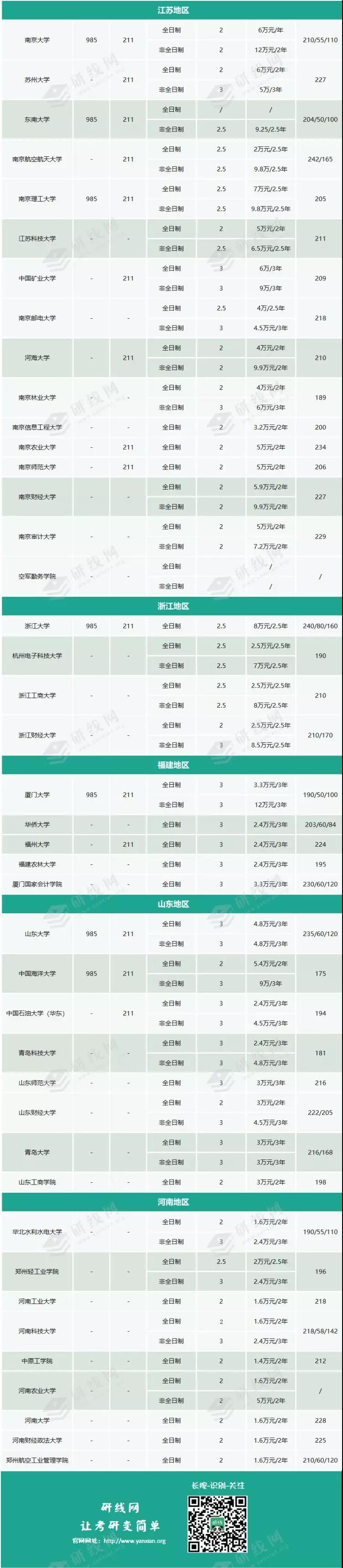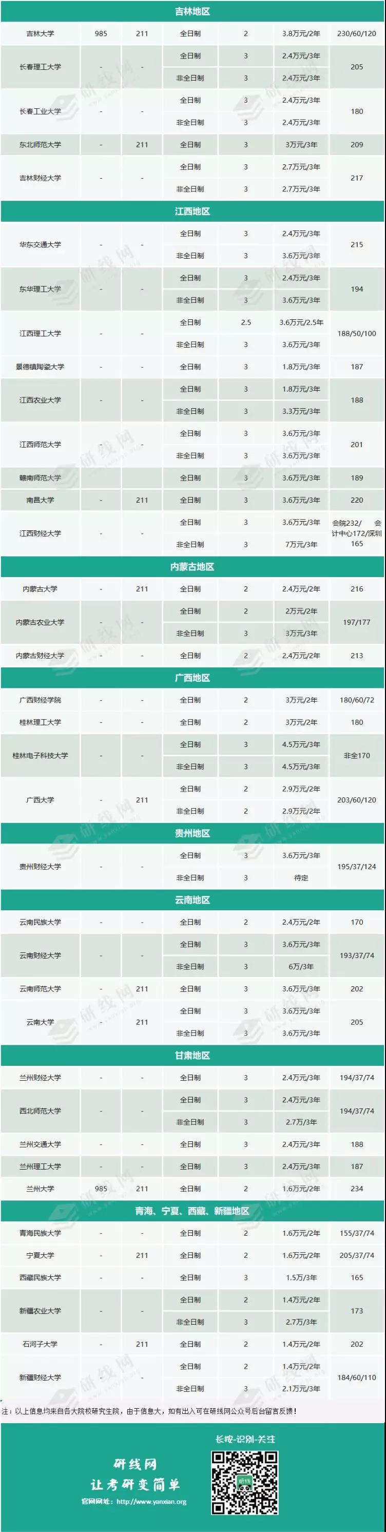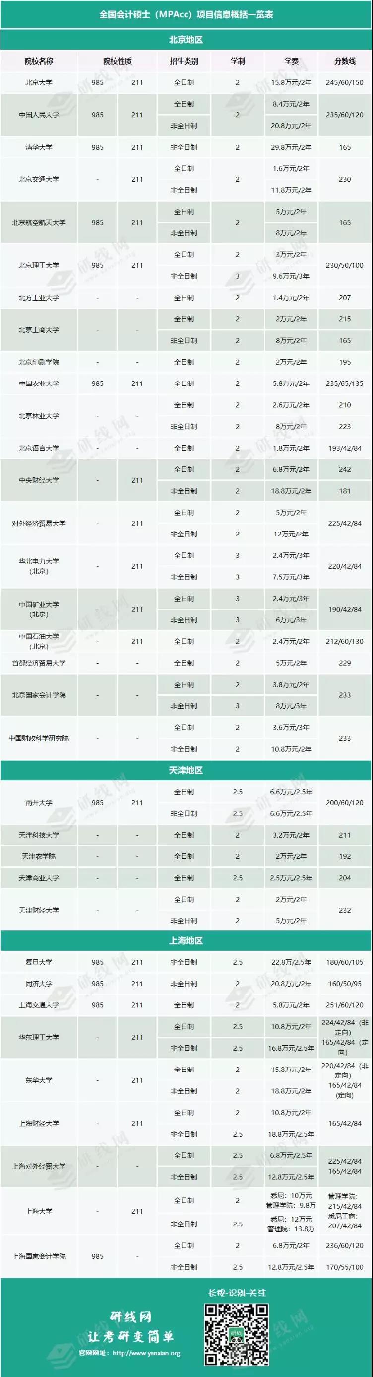 為同學(xué)整理的是全國193所會(huì)計(jì)專碩及2018年教育部新增的58所院校學(xué)費(fèi)及分?jǐn)?shù)線信息。