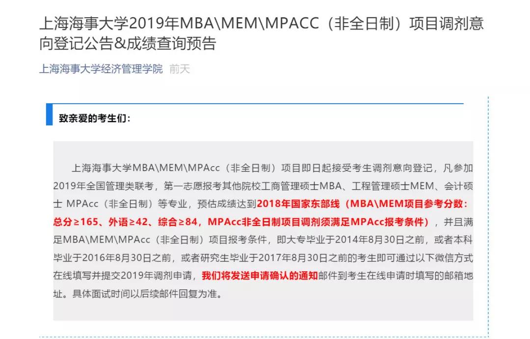 7、部分畢業(yè)滿三年的同學(xué)可以選擇調(diào)劑到MBA/MPA/MEM(成功率最高)。
