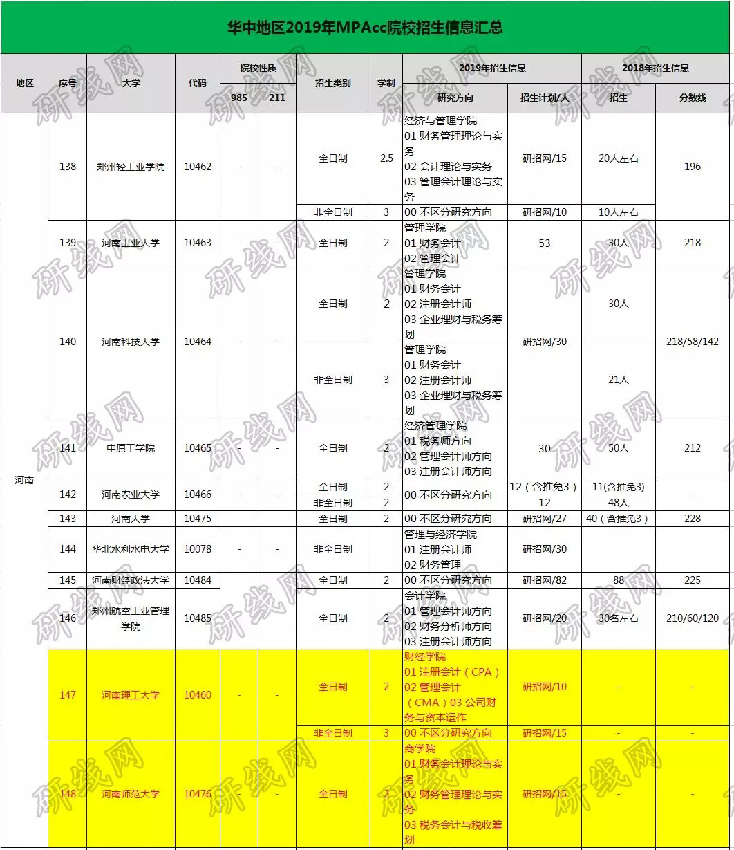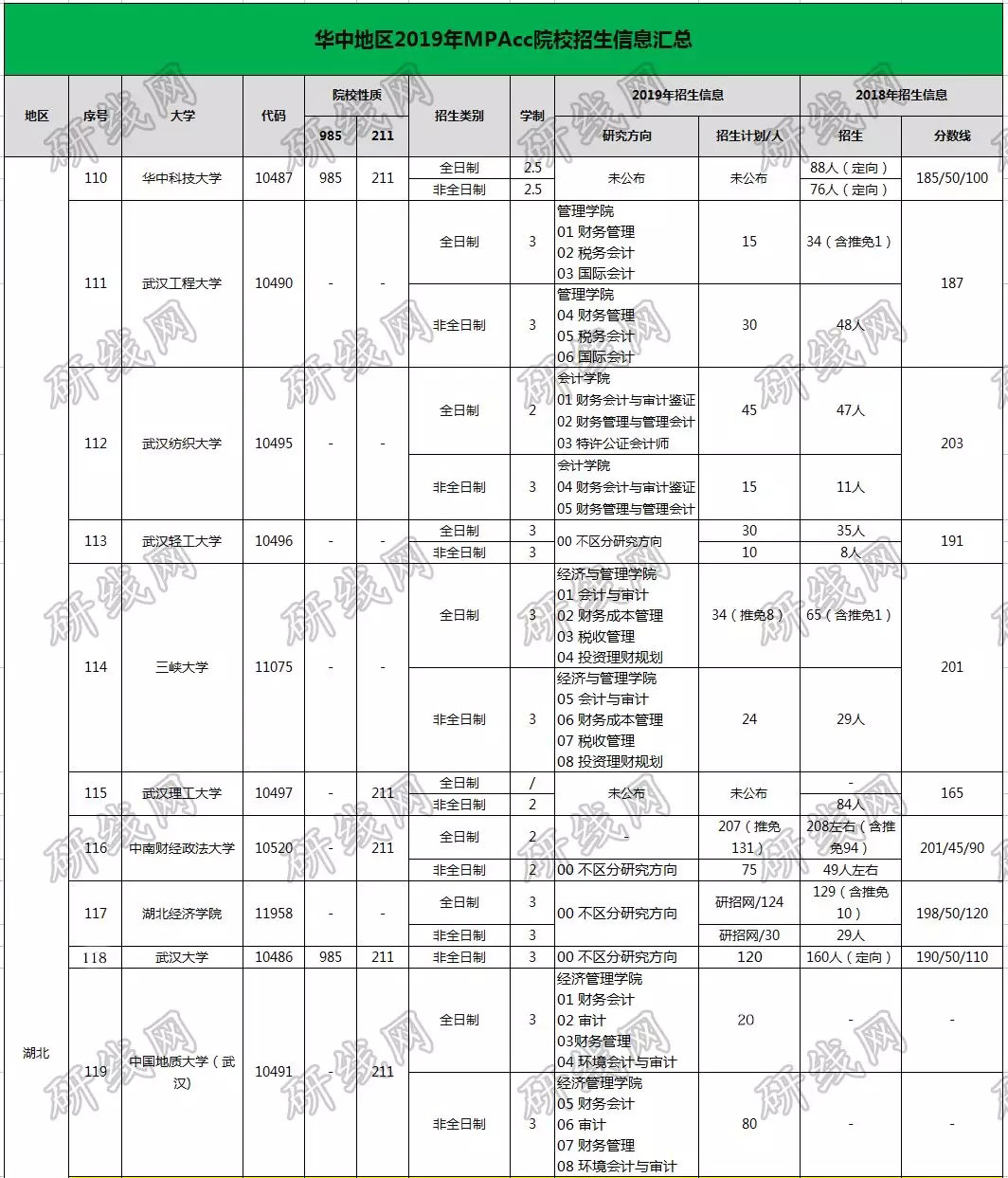 2019會計(jì)專碩(MPAcc)華中地區(qū)院校的招生信息