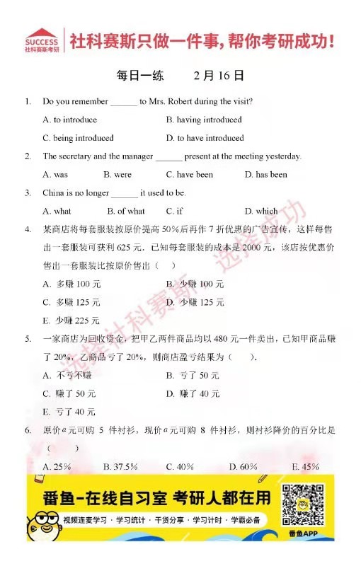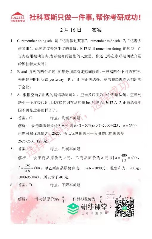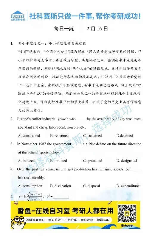 考研是一場持久戰(zhàn),保持良好的學(xué)習(xí)習(xí)慣,是能確保復(fù)習(xí)高效的關(guān)鍵。今天社科賽斯考研網(wǎng)小編整理了“2022考研每日一練:2月16日每日一練及答案”的內(nèi)容,希望能對廣大考生有所幫助。