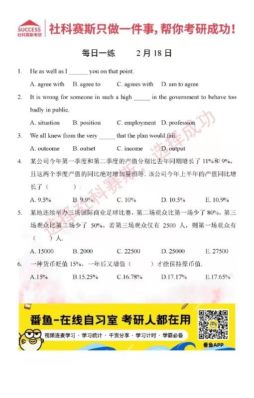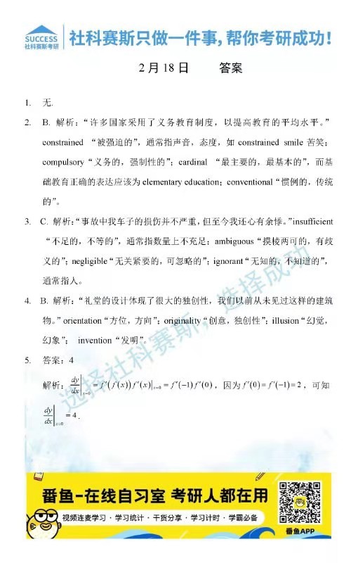 以上就是社科賽斯考研網(wǎng)小編為大家整理2022考研每日一練:2月18日每日一練及答案的全部內(nèi)容,希望各位考生堅持利用起來,更多每日一練內(nèi)容請持續(xù)關(guān)注社科賽斯考研網(wǎng)。