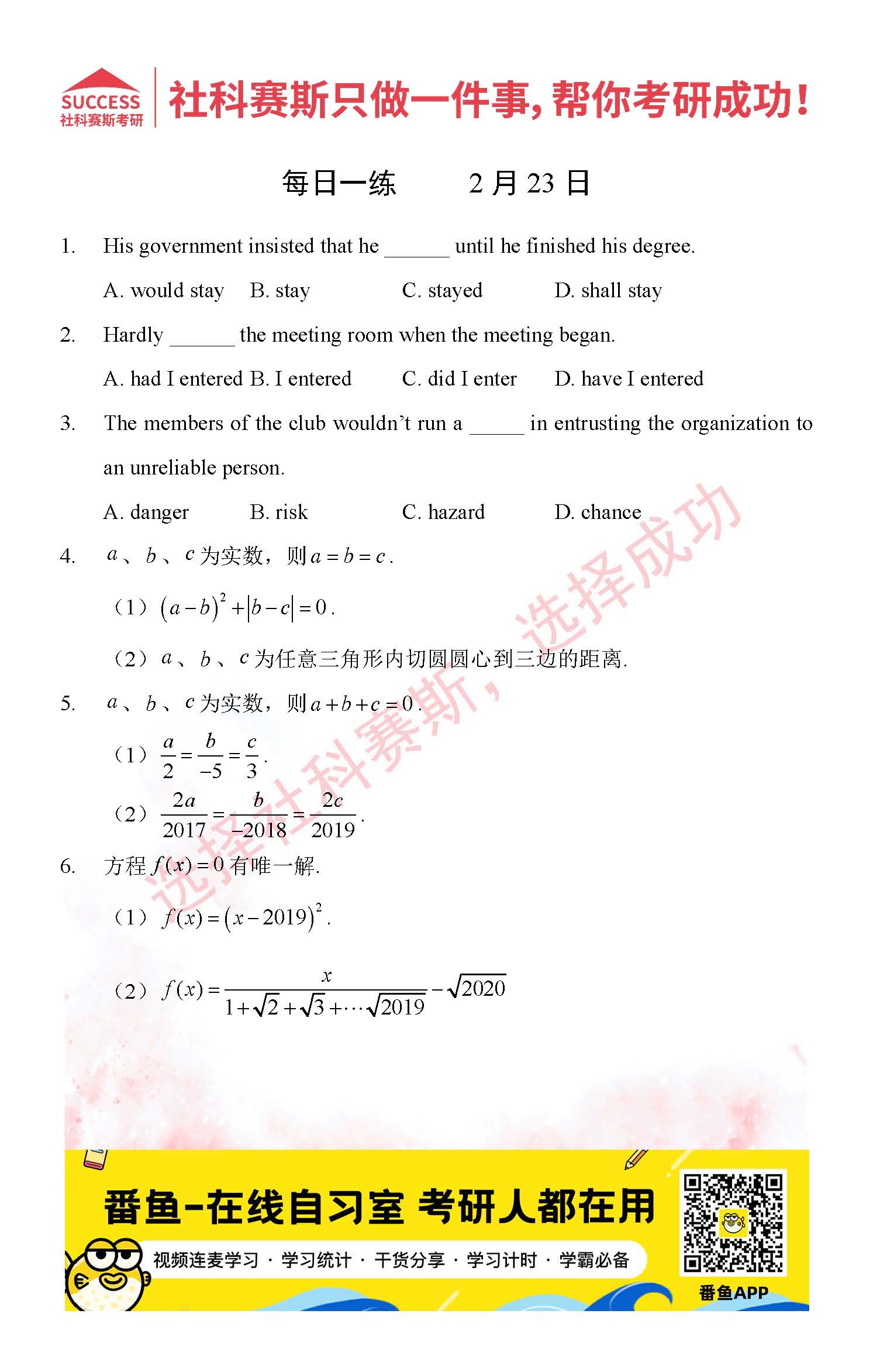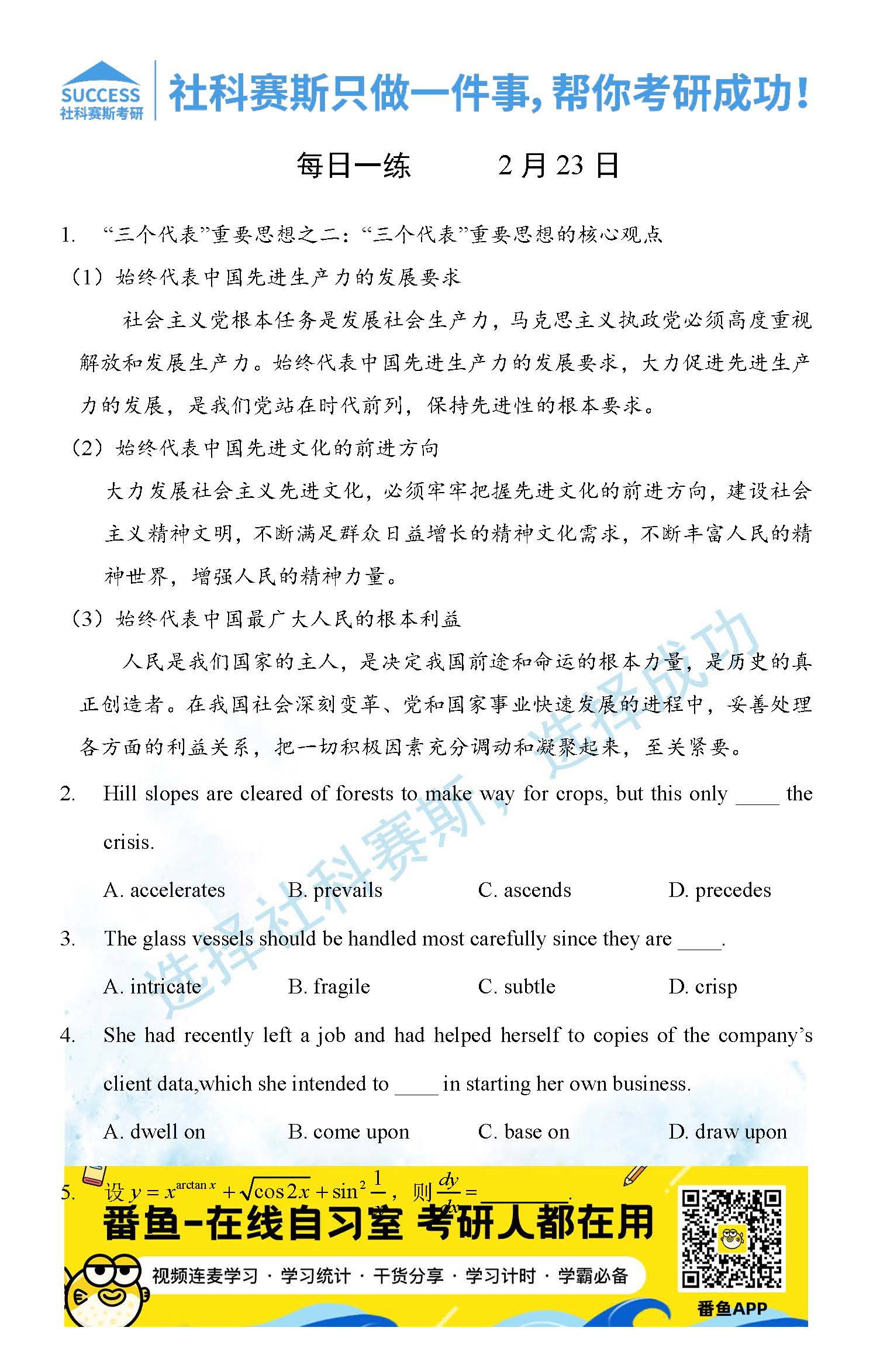 考研是一場持久戰(zhàn),保持良好的學(xué)習(xí)習(xí)慣,是能確保復(fù)習(xí)高效的關(guān)鍵。今天社科賽斯考研網(wǎng)小編整理了“2022考研每日一練:2月23日每日一練及答案”的內(nèi)容,希望能對廣大考生有所幫助。