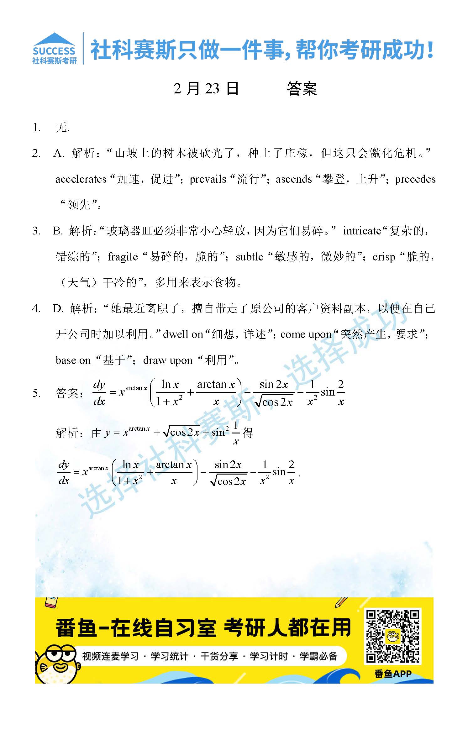 以上就是社科賽斯考研網(wǎng)小編為大家整理2022考研每日一練:2月23日每日一練及答案的全部內(nèi)容,希望各位考生堅持利用起來,更多每日一練內(nèi)容請持續(xù)關(guān)注社科賽斯考研網(wǎng)。