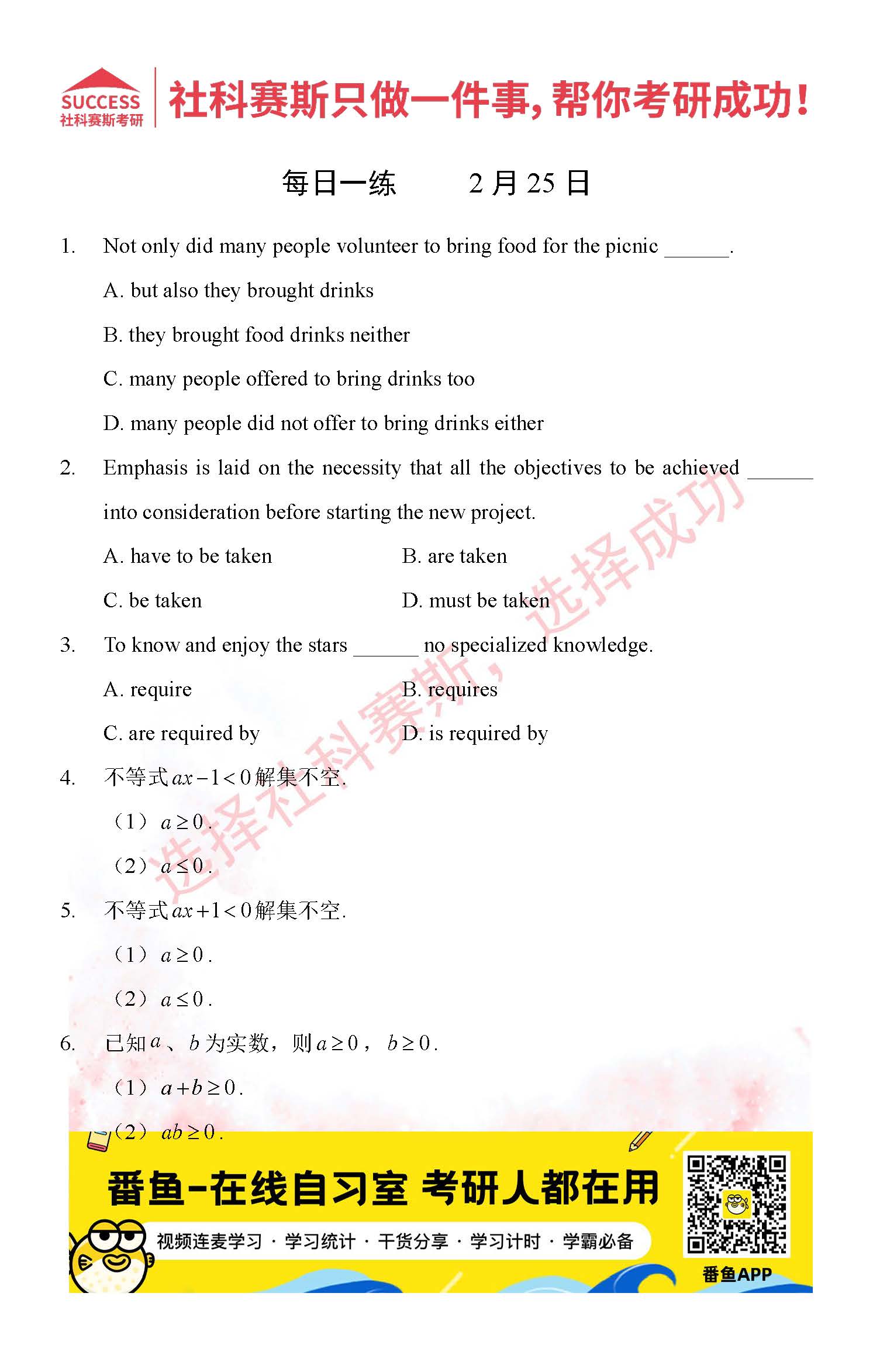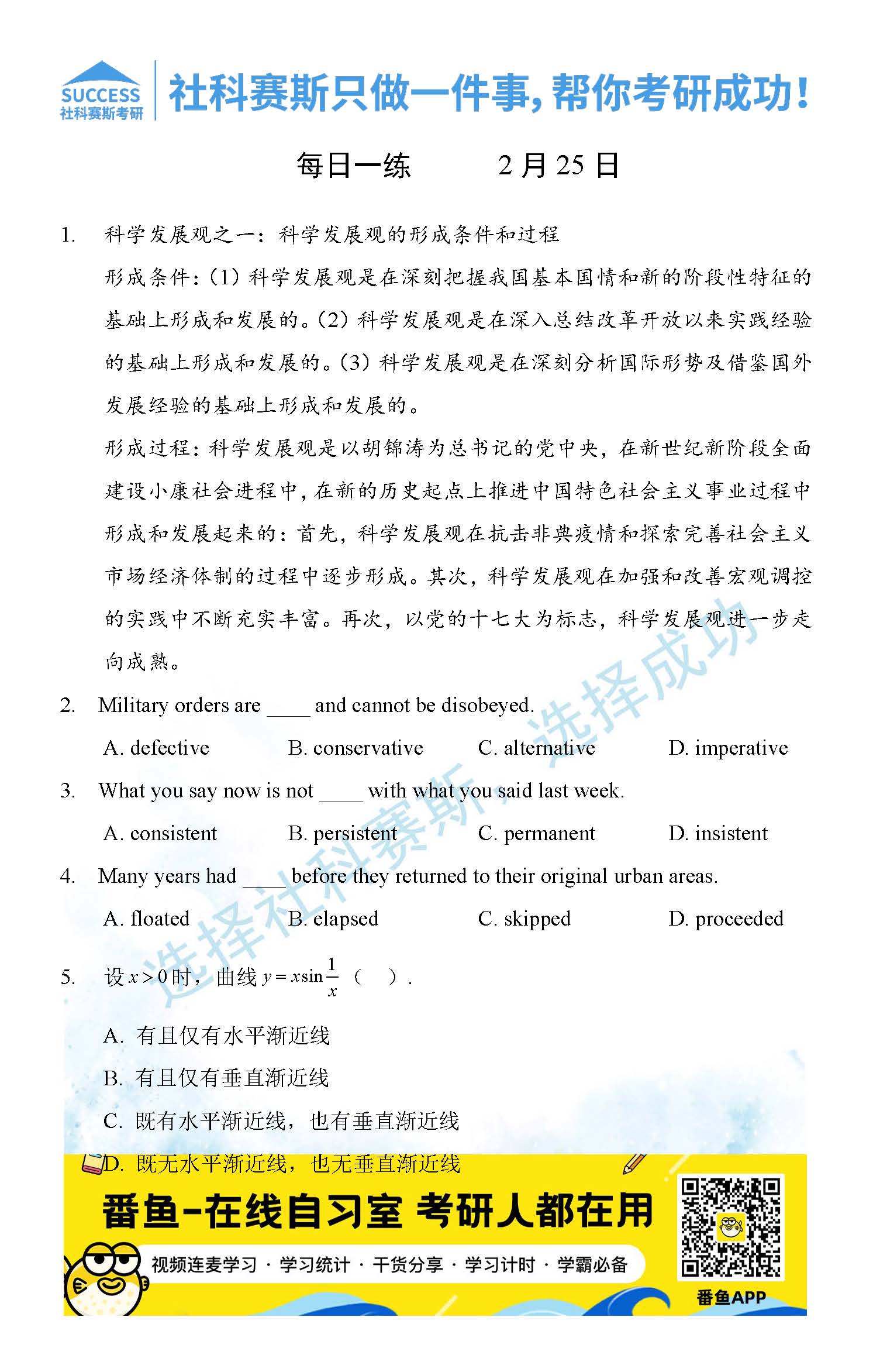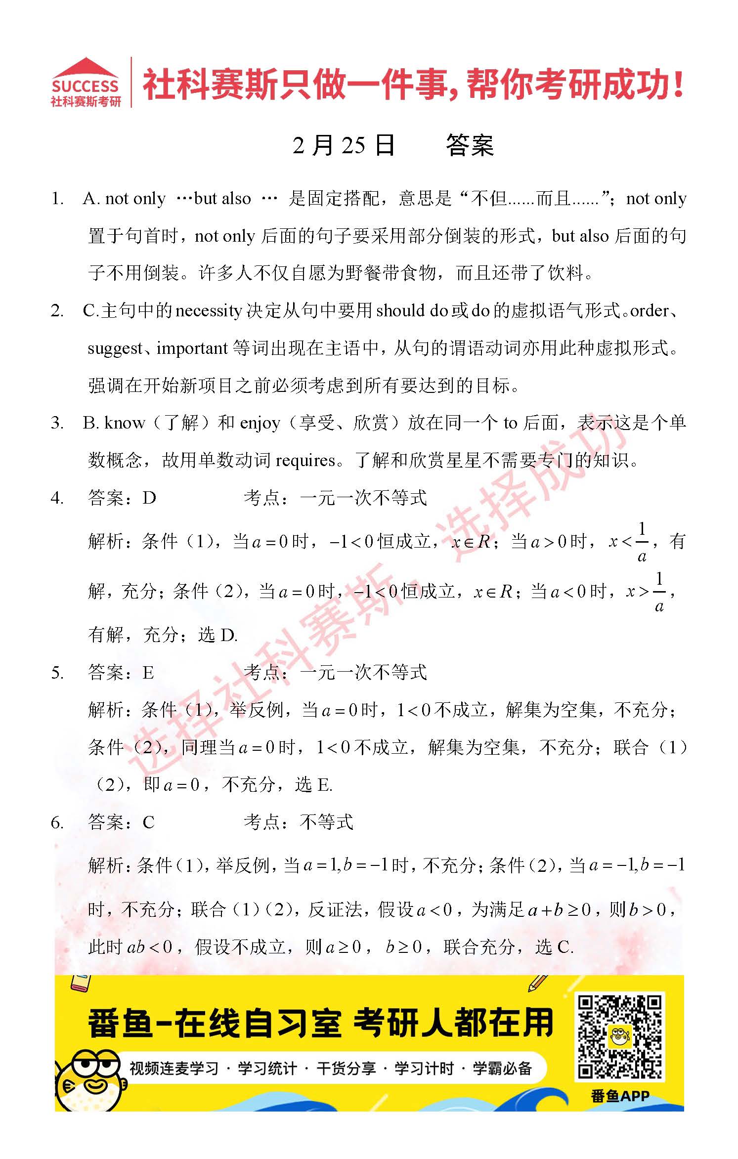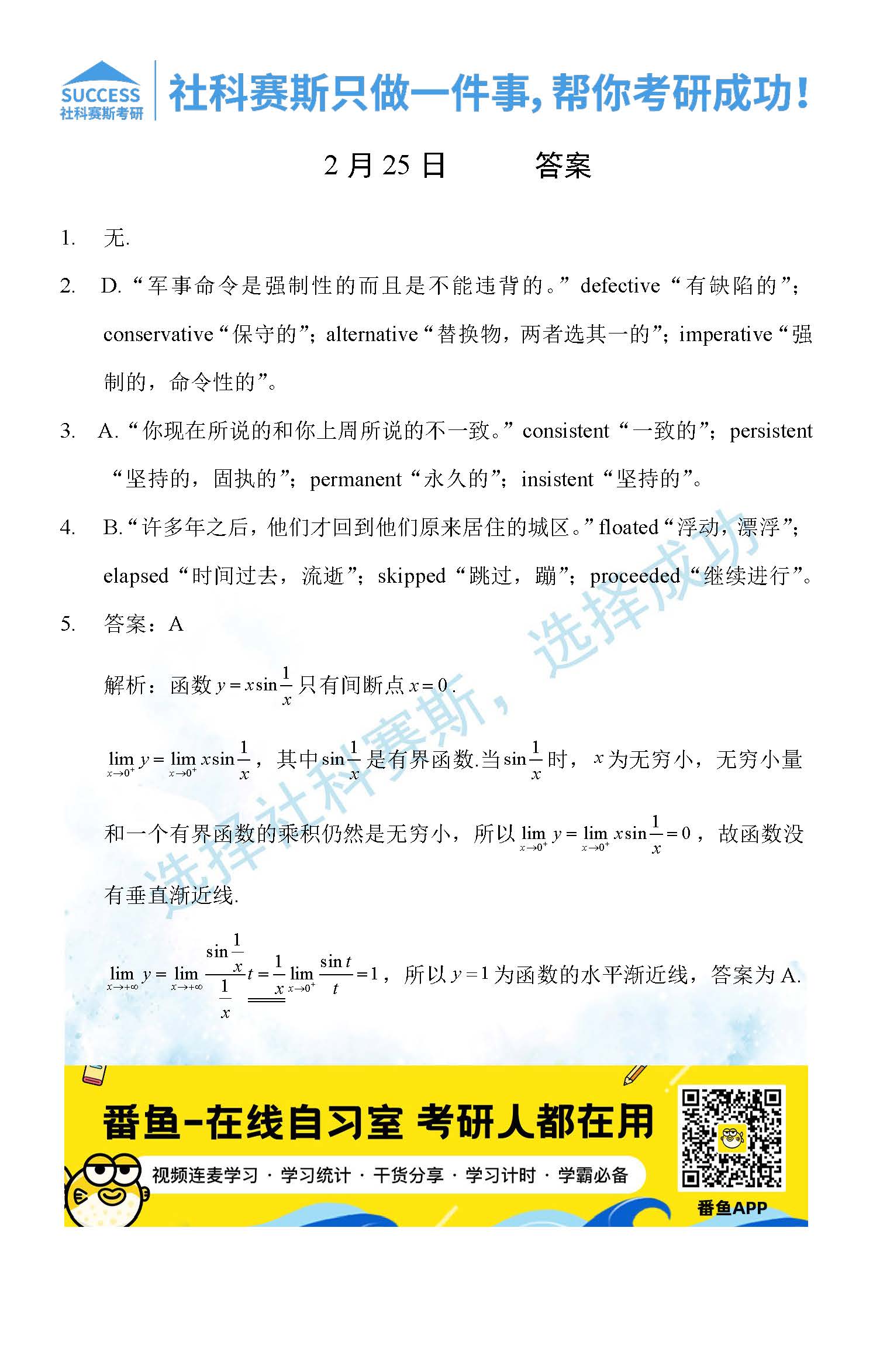 考研是一場持久戰(zhàn),保持良好的學(xué)習(xí)習(xí)慣,是能確保復(fù)習(xí)高效的關(guān)鍵。今天社科賽斯考研網(wǎng)小編整理了“2022考研每日一練:2月25日每日一練及答案”的內(nèi)容,希望能對廣大考生有所幫助。