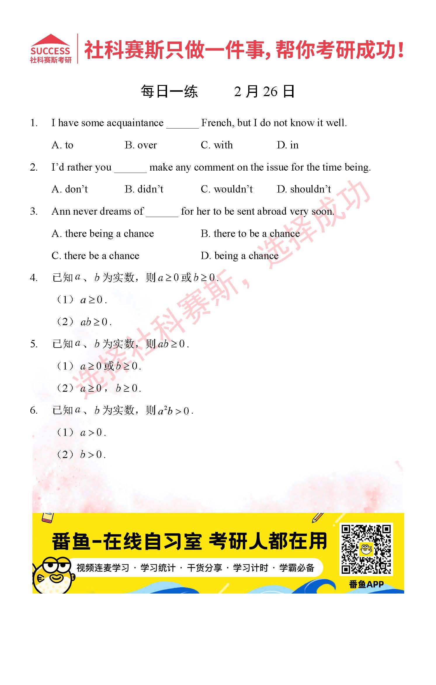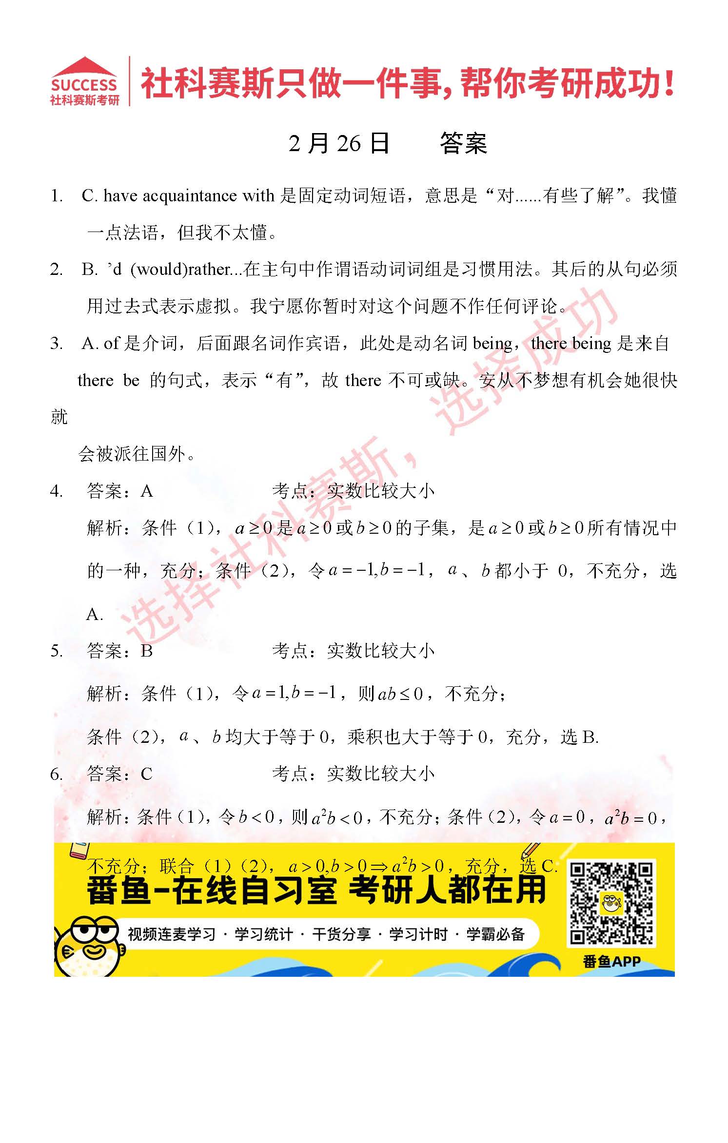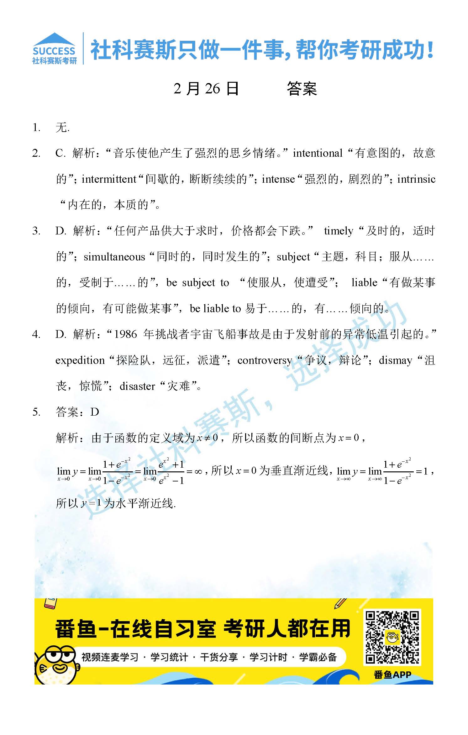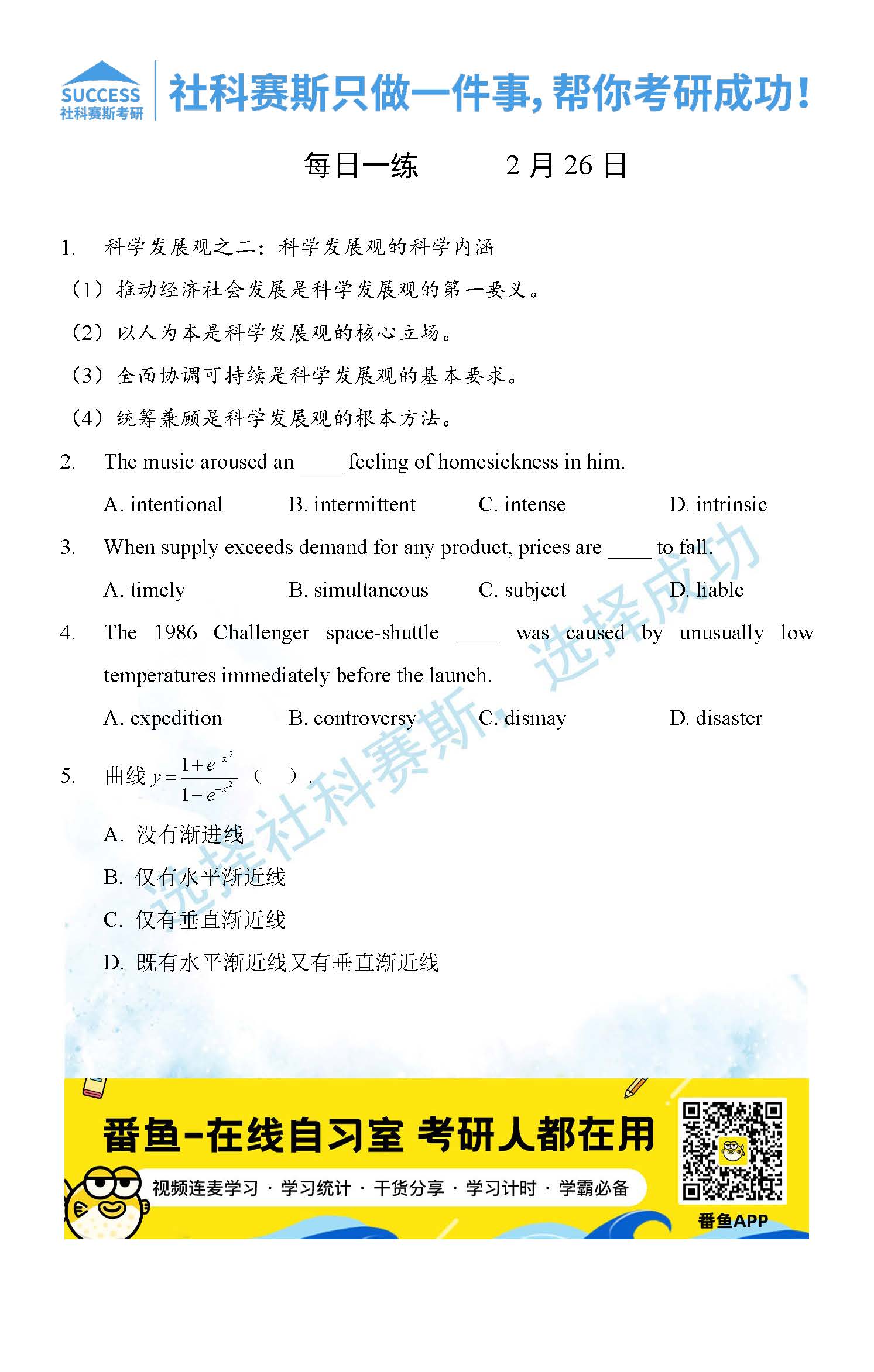 以上就是社科賽斯考研網(wǎng)小編為大家整理2022考研每日一練:2月26日每日一練及答案的全部?jī)?nèi)容,希望各位考生堅(jiān)持利用起來(lái),更多每日一練內(nèi)容請(qǐng)持續(xù)關(guān)注社科賽斯考研網(wǎng)。