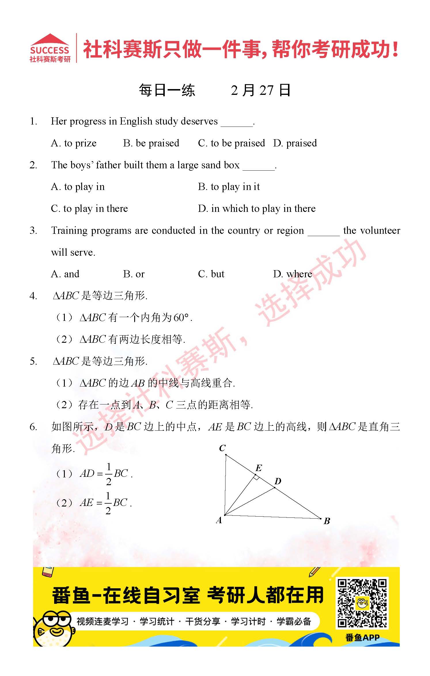 以上就是社科賽斯考研網(wǎng)小編為大家整理2022考研每日一練:2月27日每日一練及答案的全部內(nèi)容,希望各位考生堅(jiān)持利用起來,更多每日一練內(nèi)容請持續(xù)關(guān)注社科賽斯考研網(wǎng)。