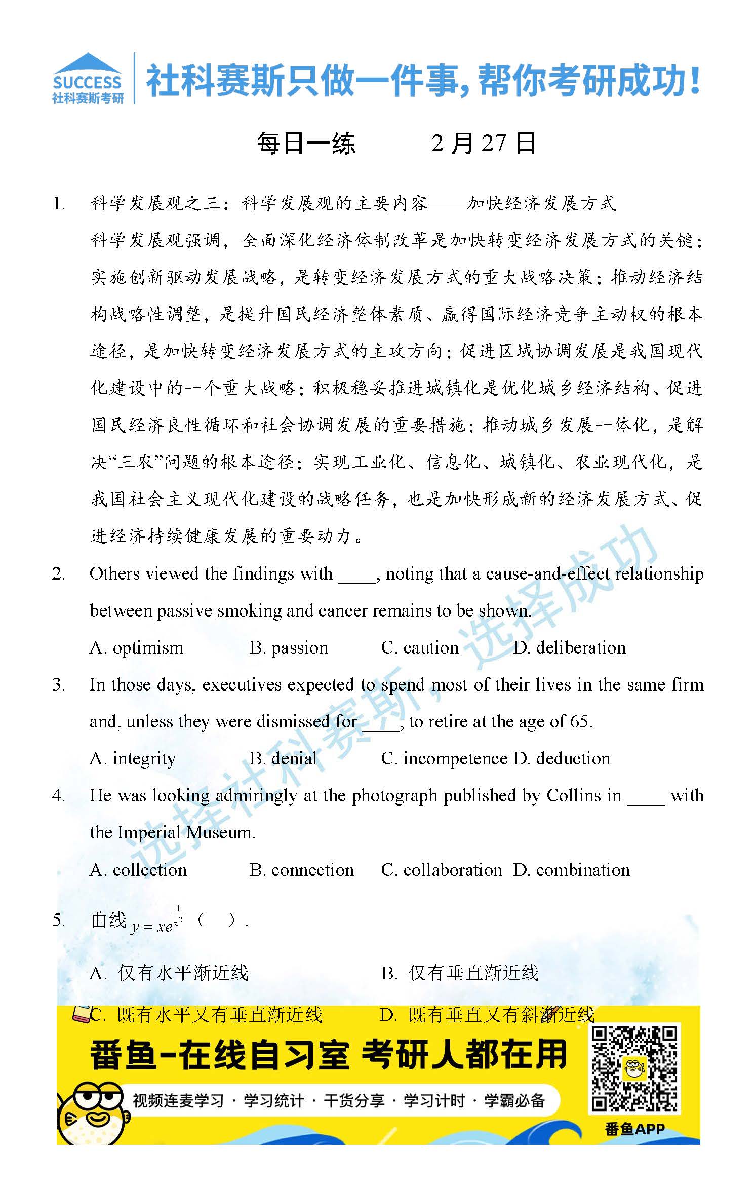 2022考研每日一練:2月27日每日一練及答案