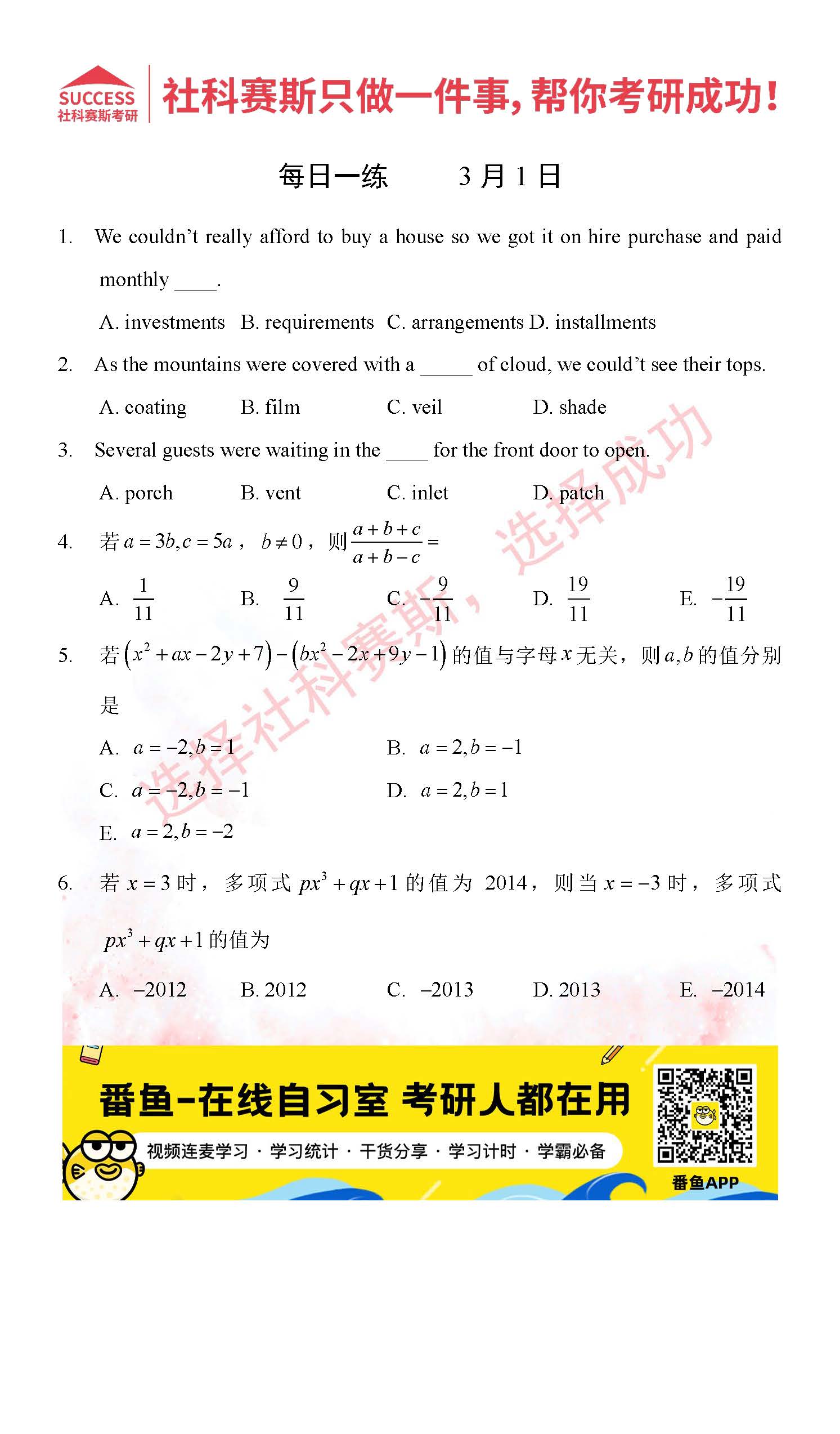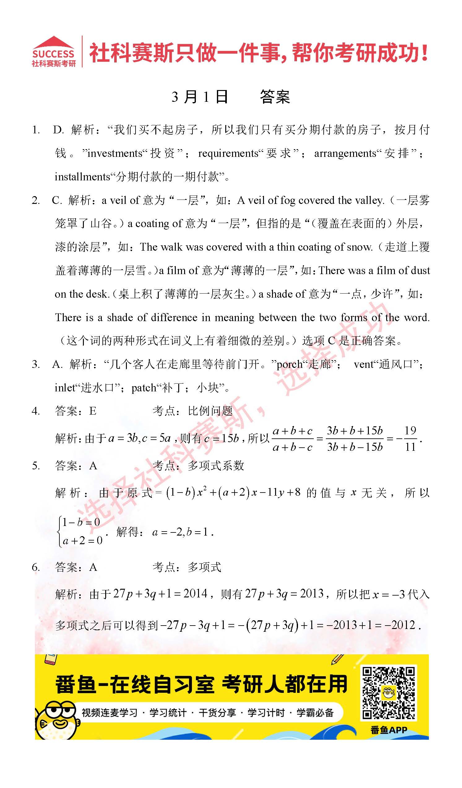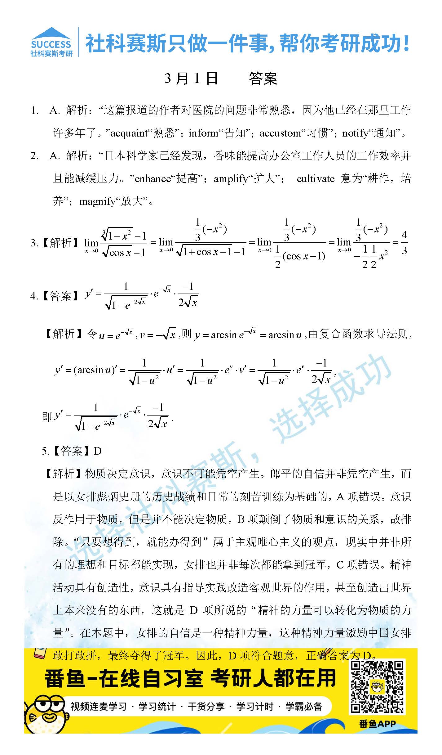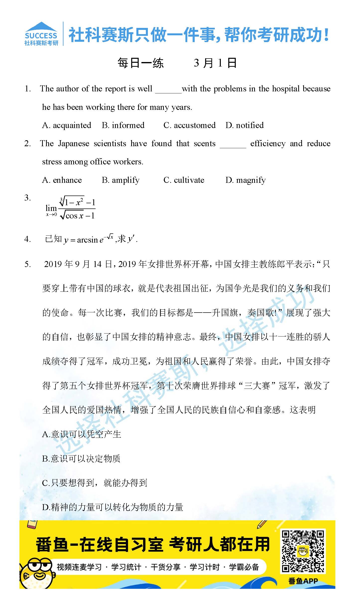 以上就是社科賽斯考研網(wǎng)小編為大家整理2022考研每日一練:3月1日每日一練及答案的全部內(nèi)容,希望各位考生堅持利用起來,更多每日一練內(nèi)容請持續(xù)關注社科賽斯考研網(wǎng)。