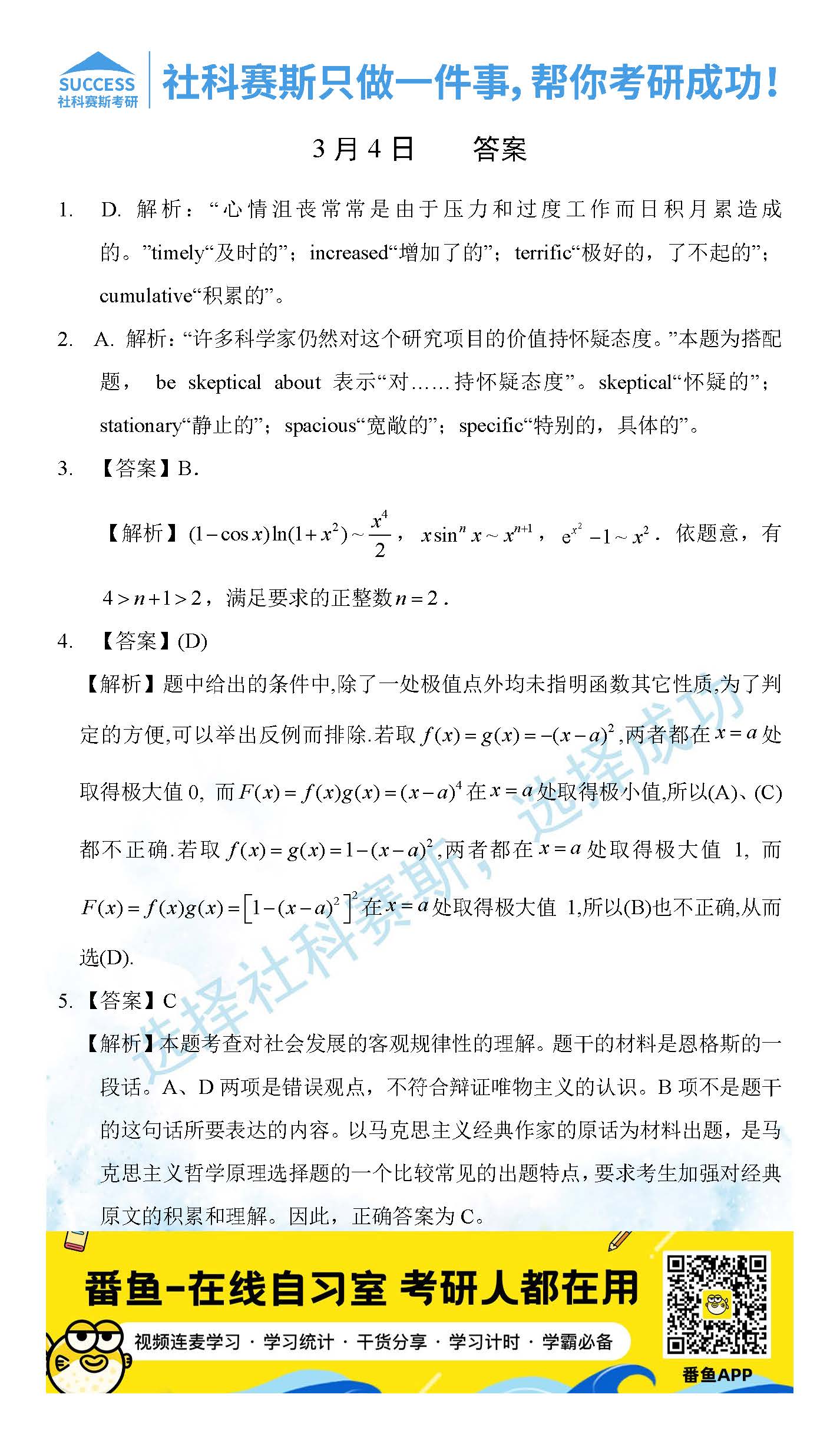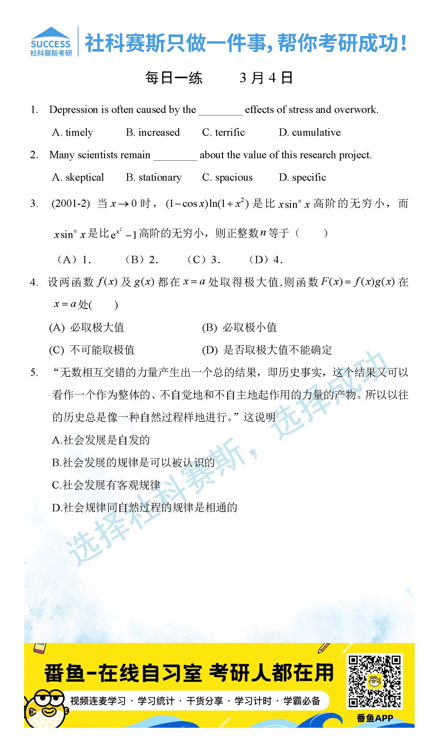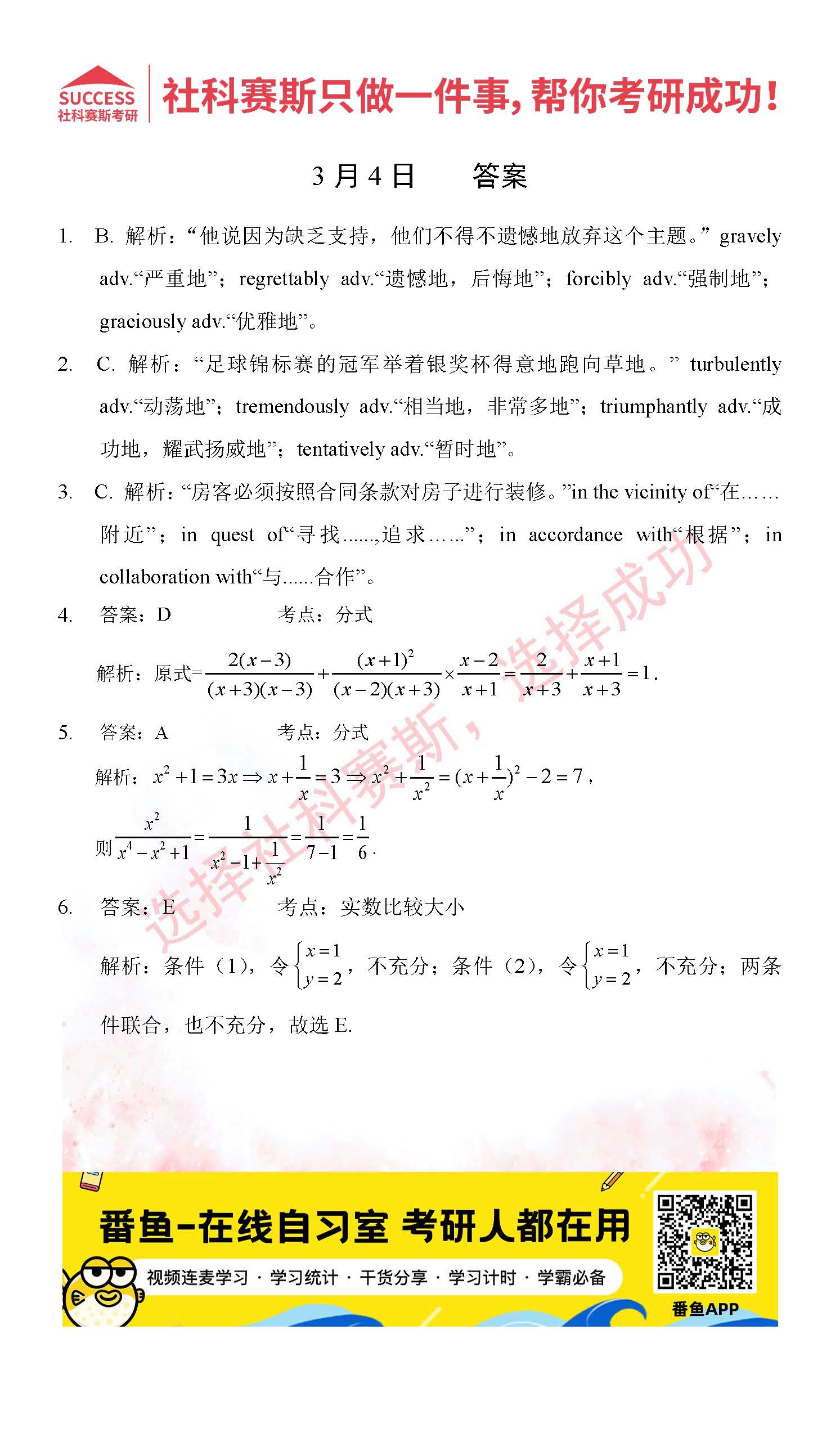以上就是社科賽斯考研網小編為大家整理2022考研每日一練:3月4日管理類聯(lián)考每日一練及答案的全部內容,希望各位考生堅持利用起來,更多每日一練內容請持續(xù)關注社科賽斯考研網