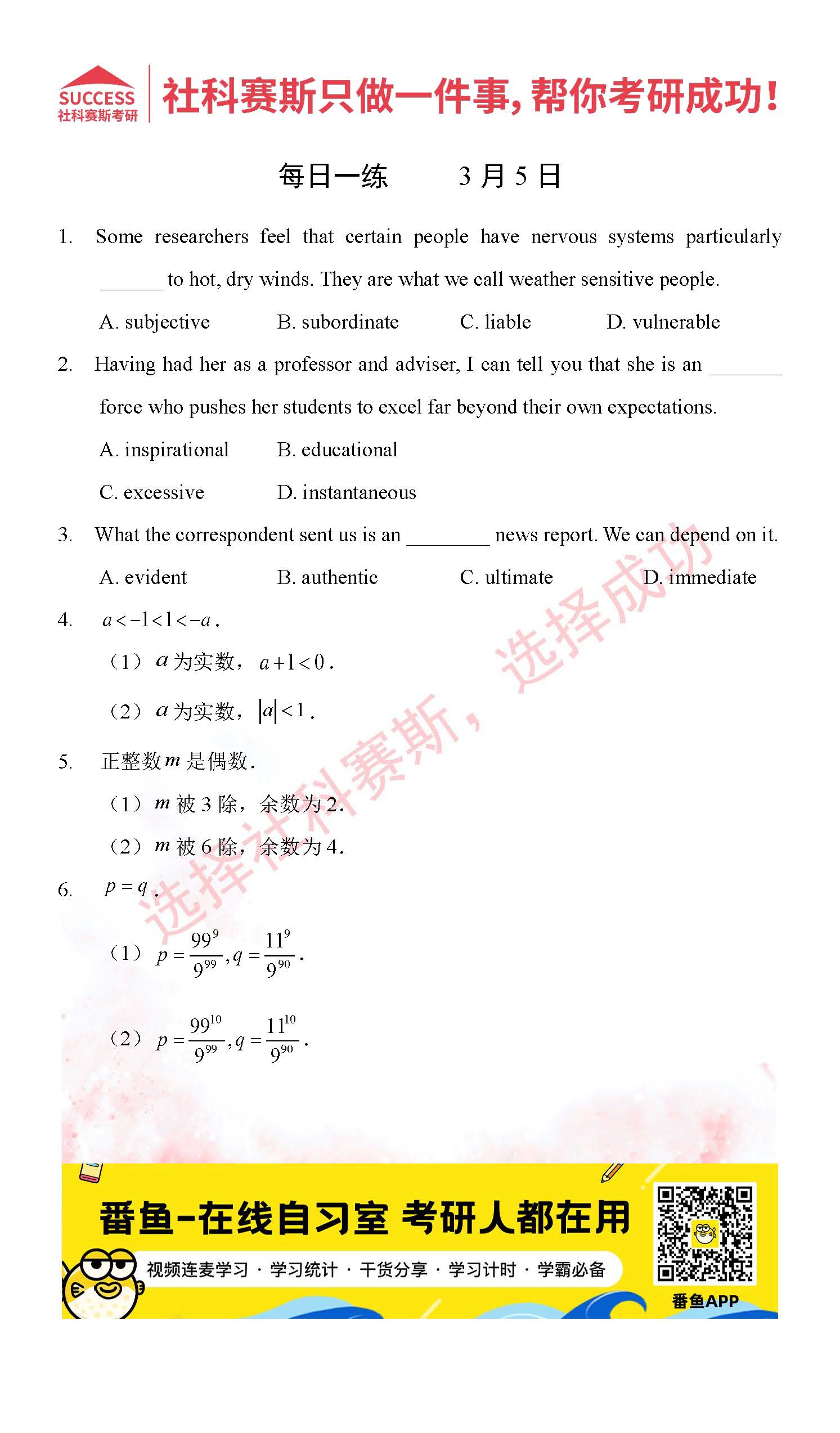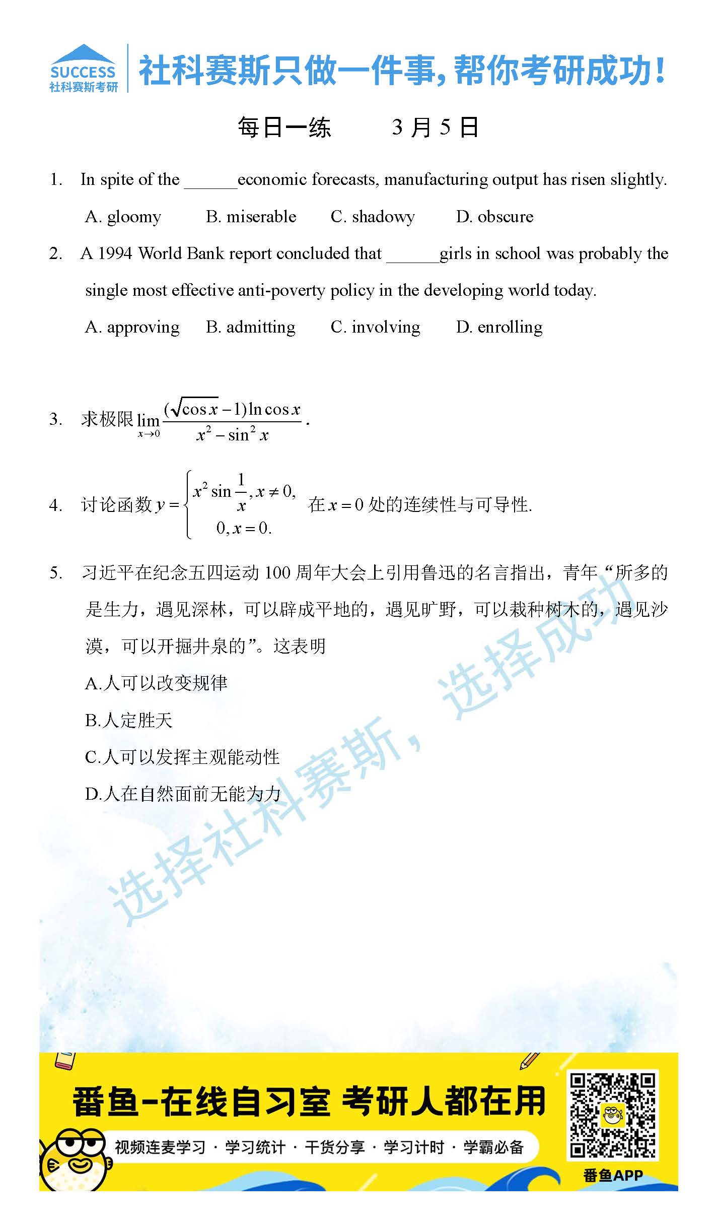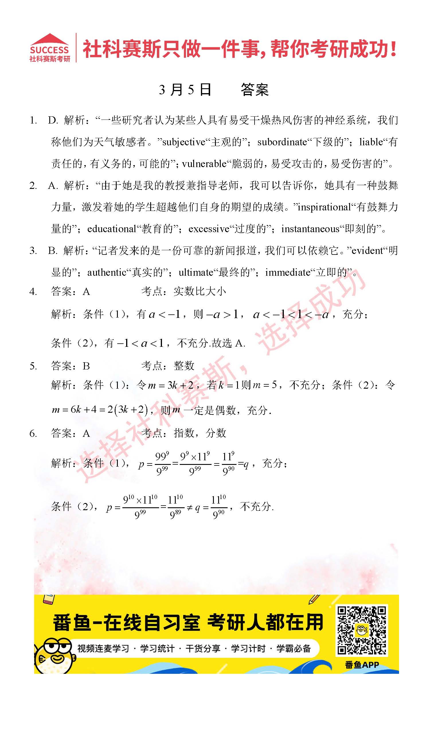 2022考研每日一練:3月5日管理類聯(lián)考每日一練及答案