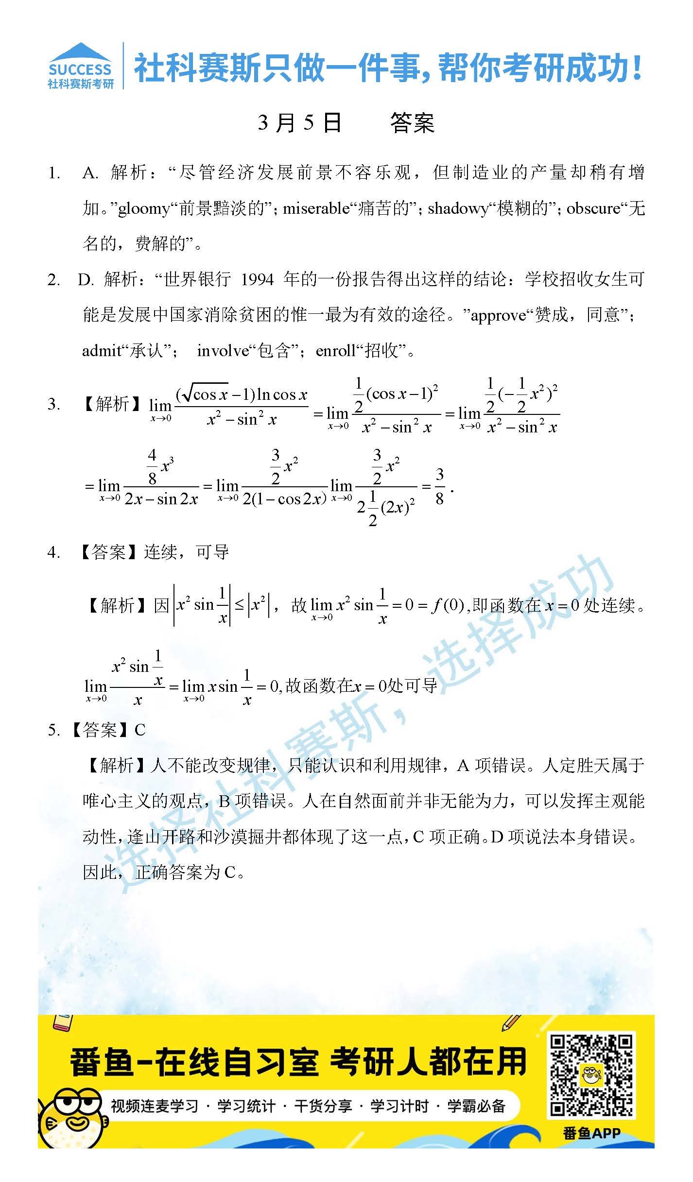 以上就是社科賽斯考研網(wǎng)小編為大家整理2022考研每日一練:3月5日管理類聯(lián)考每日一練及答案的全部內(nèi)容,希望各位考生堅(jiān)持利用起來,更多每日一練內(nèi)容請(qǐng)持續(xù)關(guān)注社科賽斯考研網(wǎng)