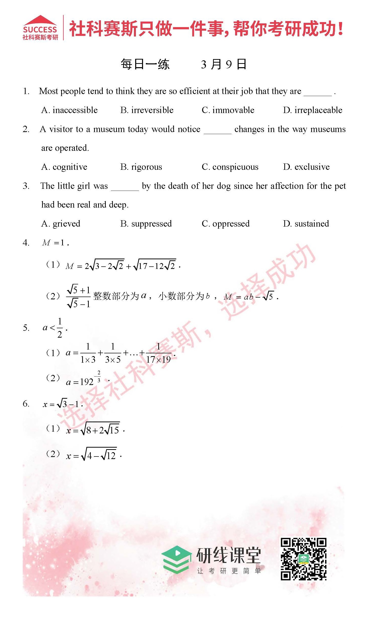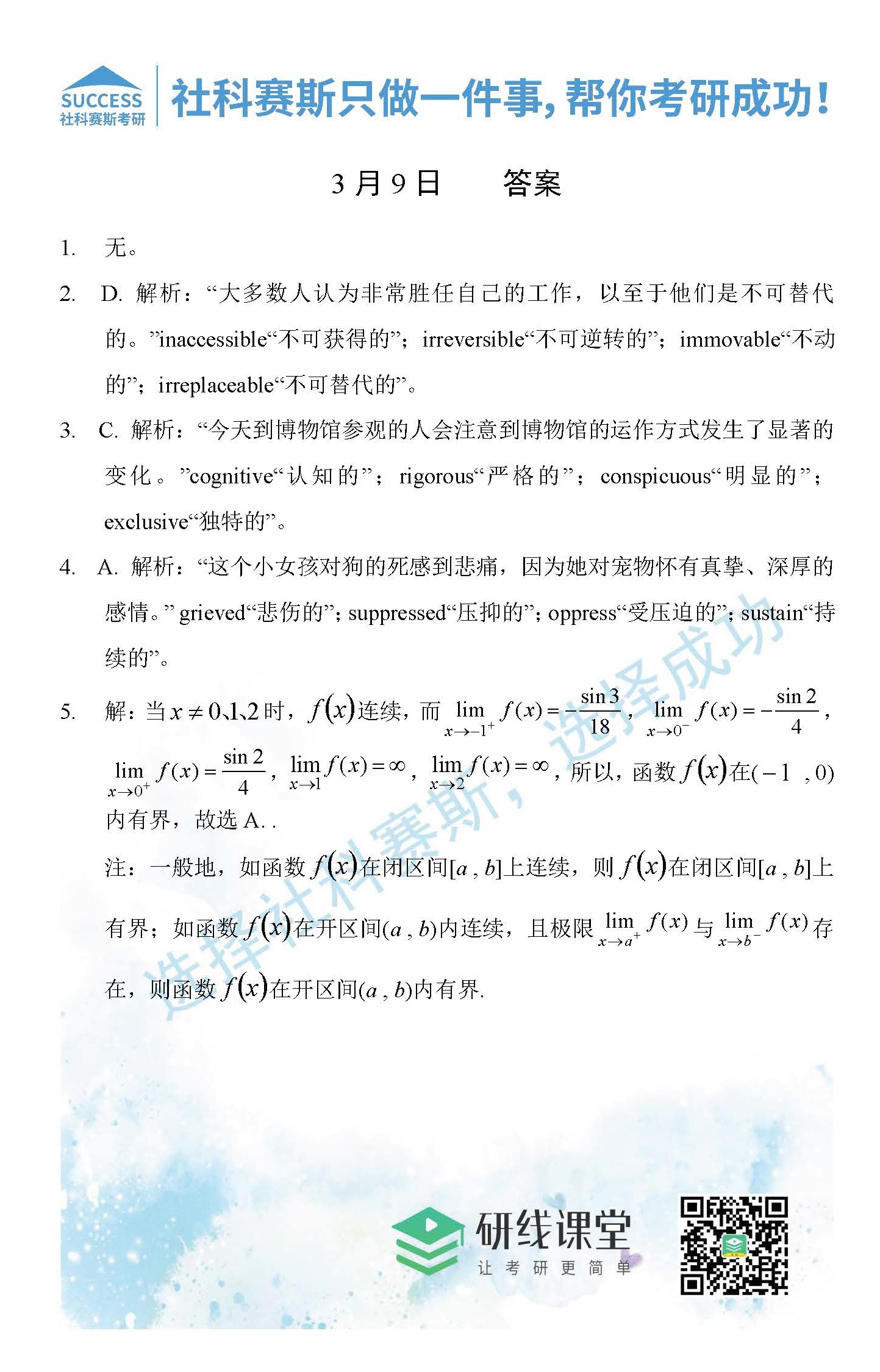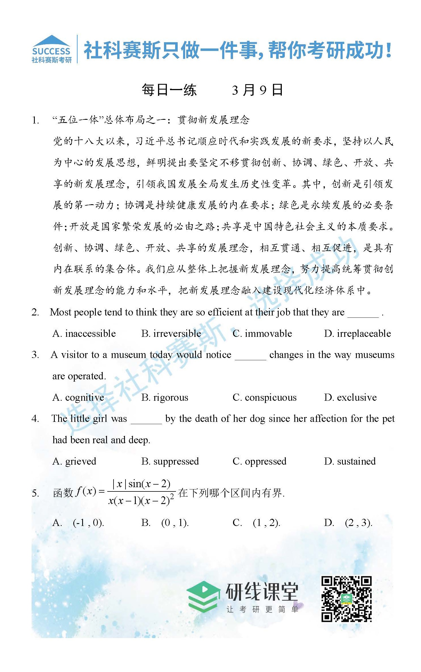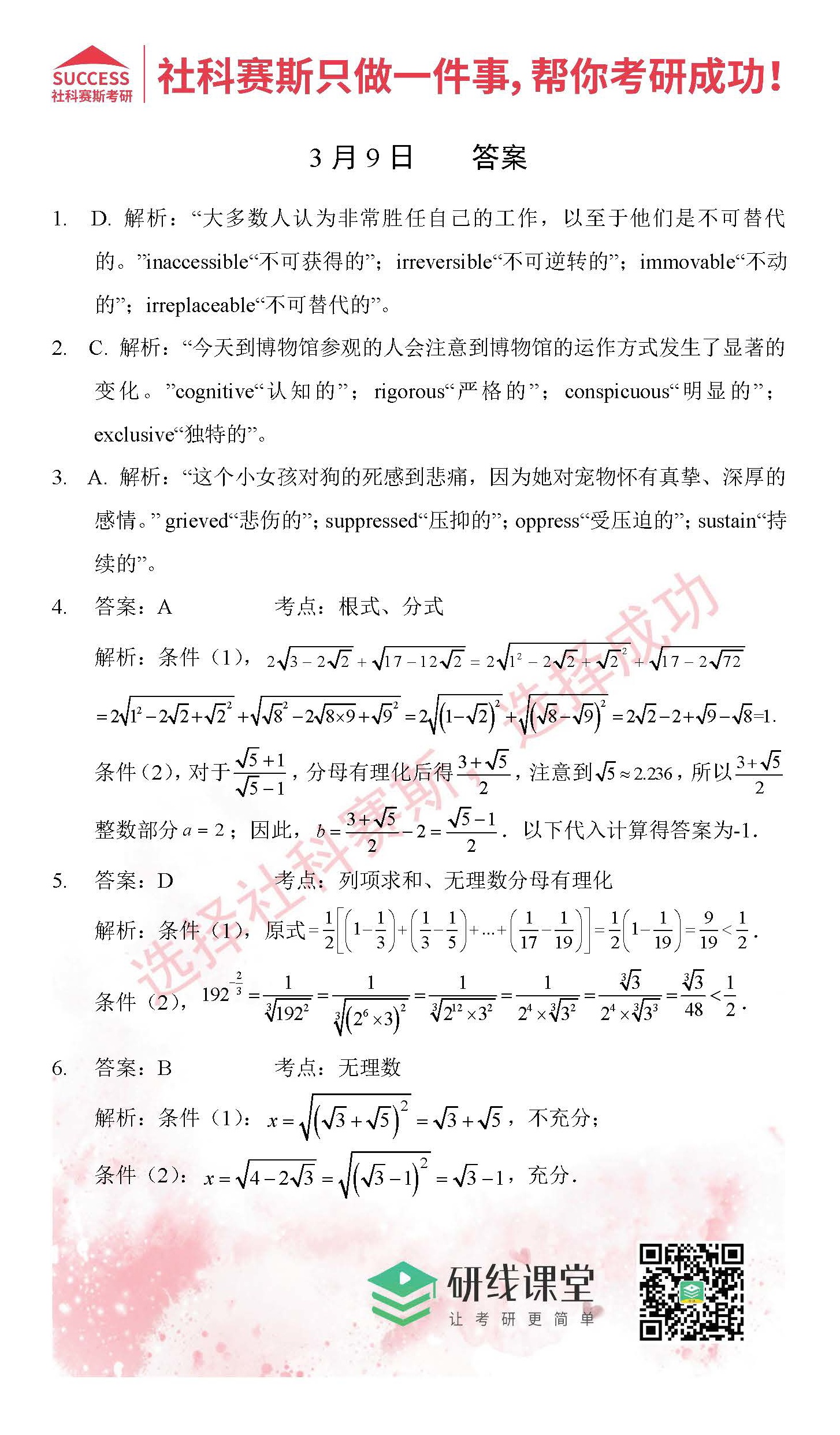 以上就是社科賽斯考研網(wǎng)小編為大家整理2022考研每日一練:3月9日管理類聯(lián)考每日一練及答案的全部內(nèi)容,希望各位考生堅(jiān)持利用起來,更多每日一練內(nèi)容請(qǐng)持續(xù)關(guān)注社科賽斯考研網(wǎng)。