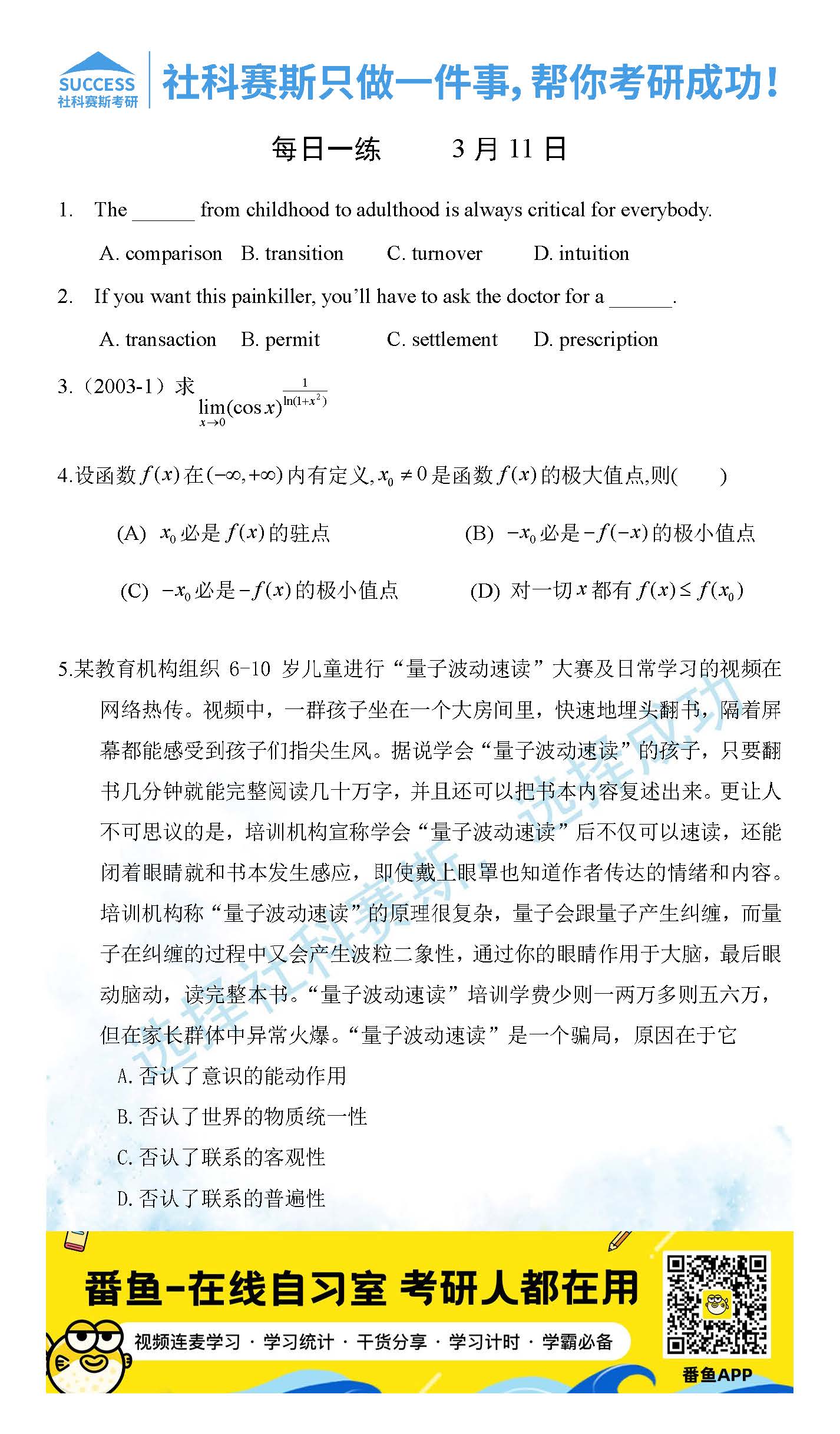 來源:社科賽斯考研網 | 2021-03-11 09:31:05