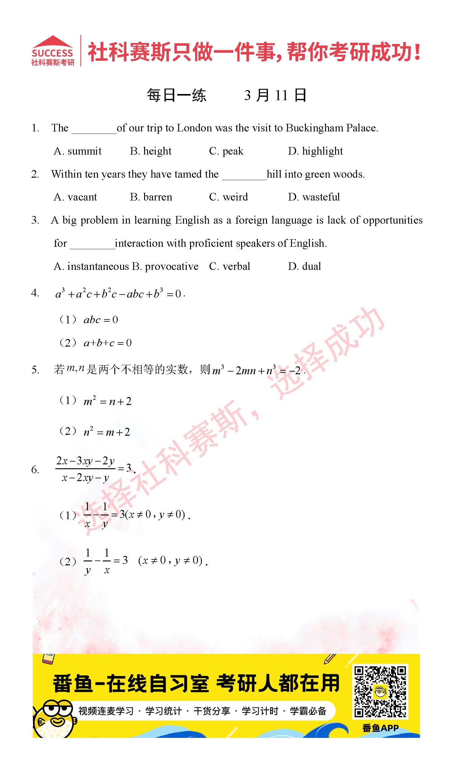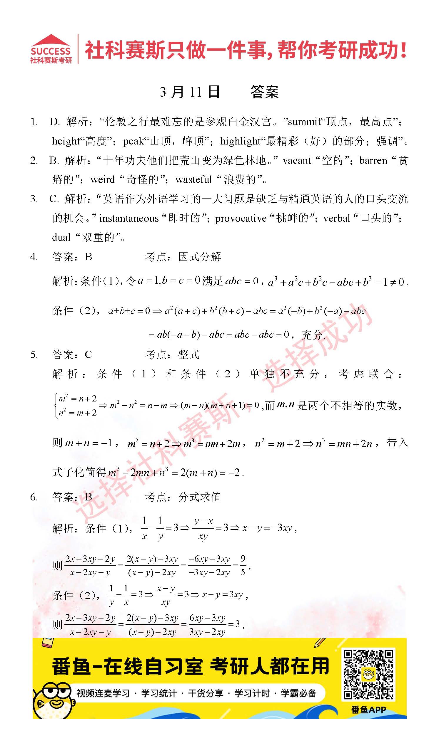 以上就是社科賽斯考研網小編為大家整理2022考研每日一練:3月10日管理類聯(lián)考每日一練及答案的全部內容,希望各位考生堅持利用起來,更多每日一練內容請持續(xù)關注社科賽斯考研網。