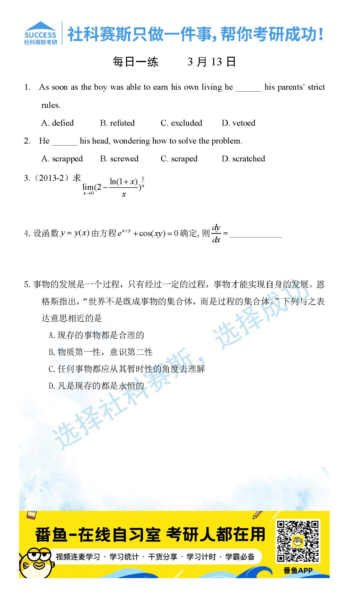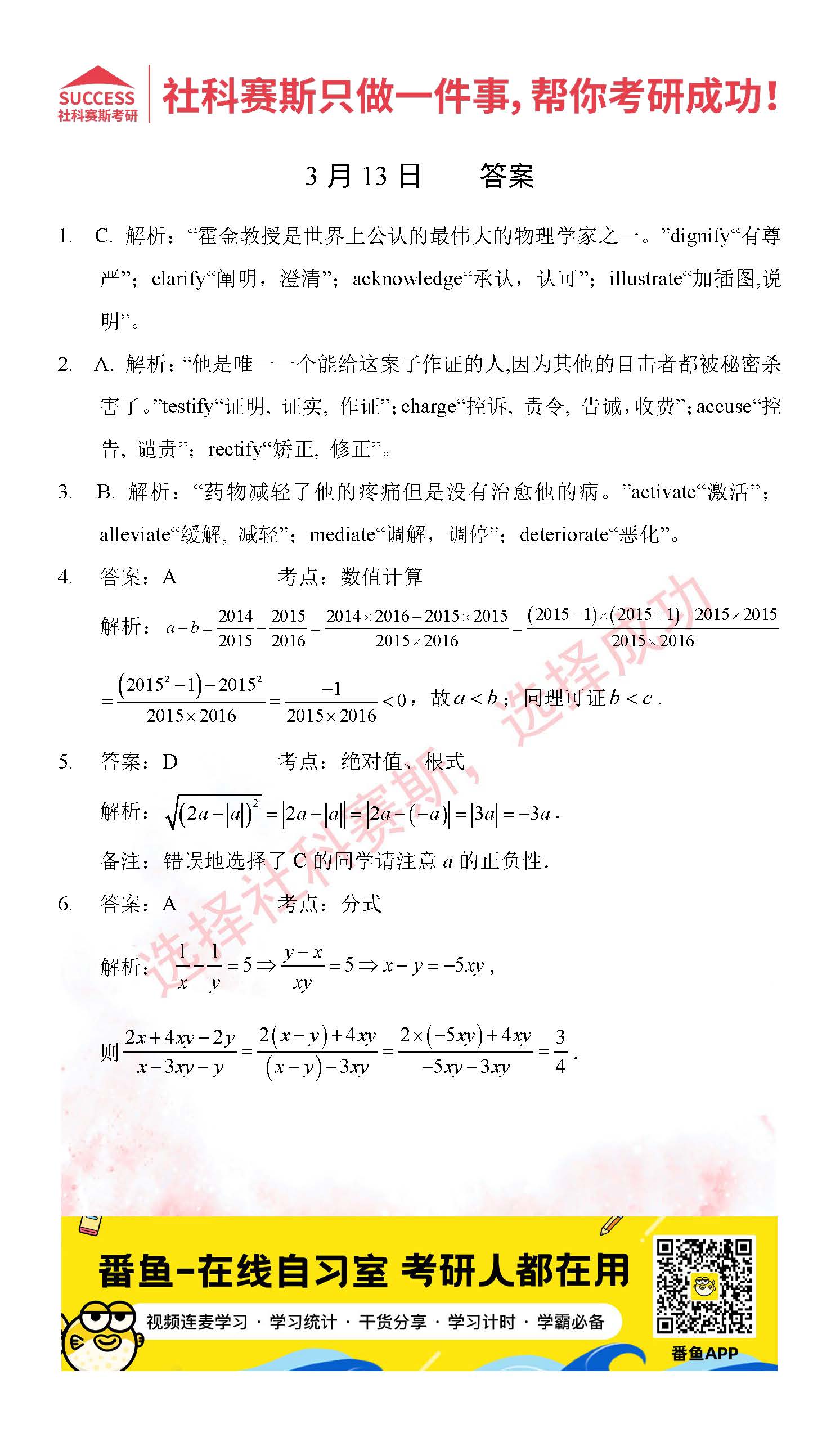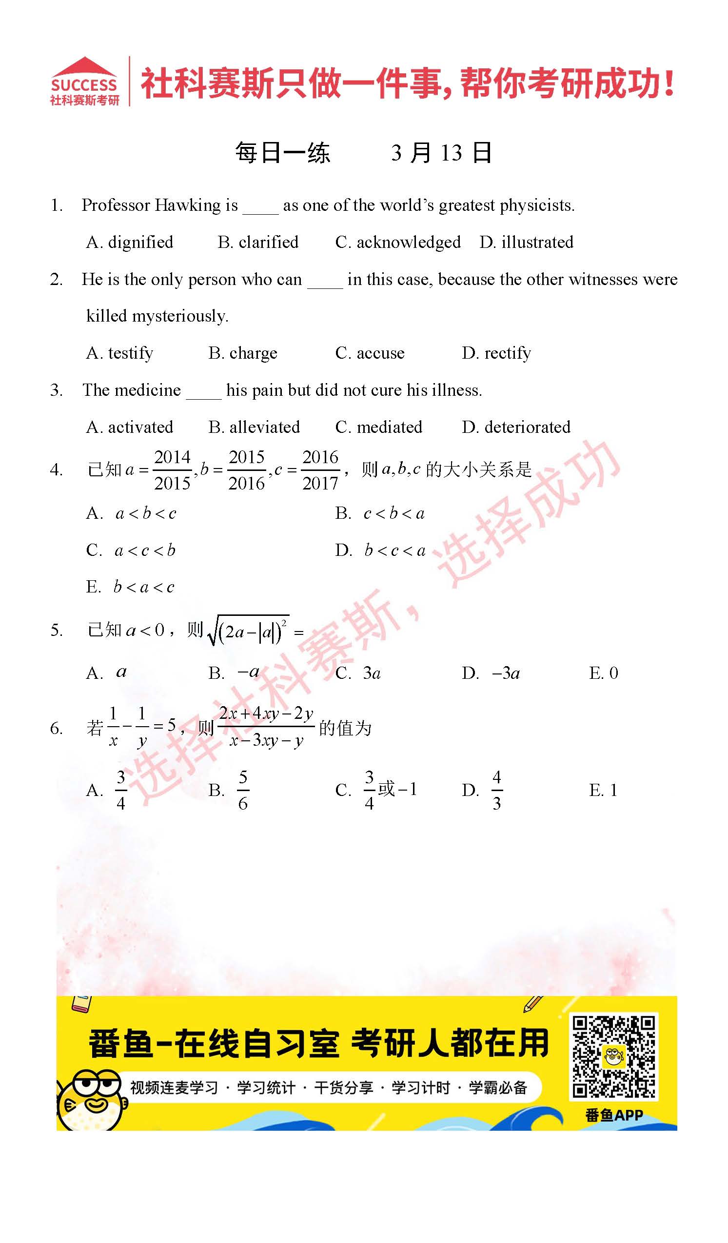 以上就是社科賽斯考研網(wǎng)小編為大家整理2022考研每日一練:3月13日管理類聯(lián)考每日一練及答案的全部內容,希望各位考生堅持利用起來,更多每日一練內容請持續(xù)關注社科賽斯考研網(wǎng)。