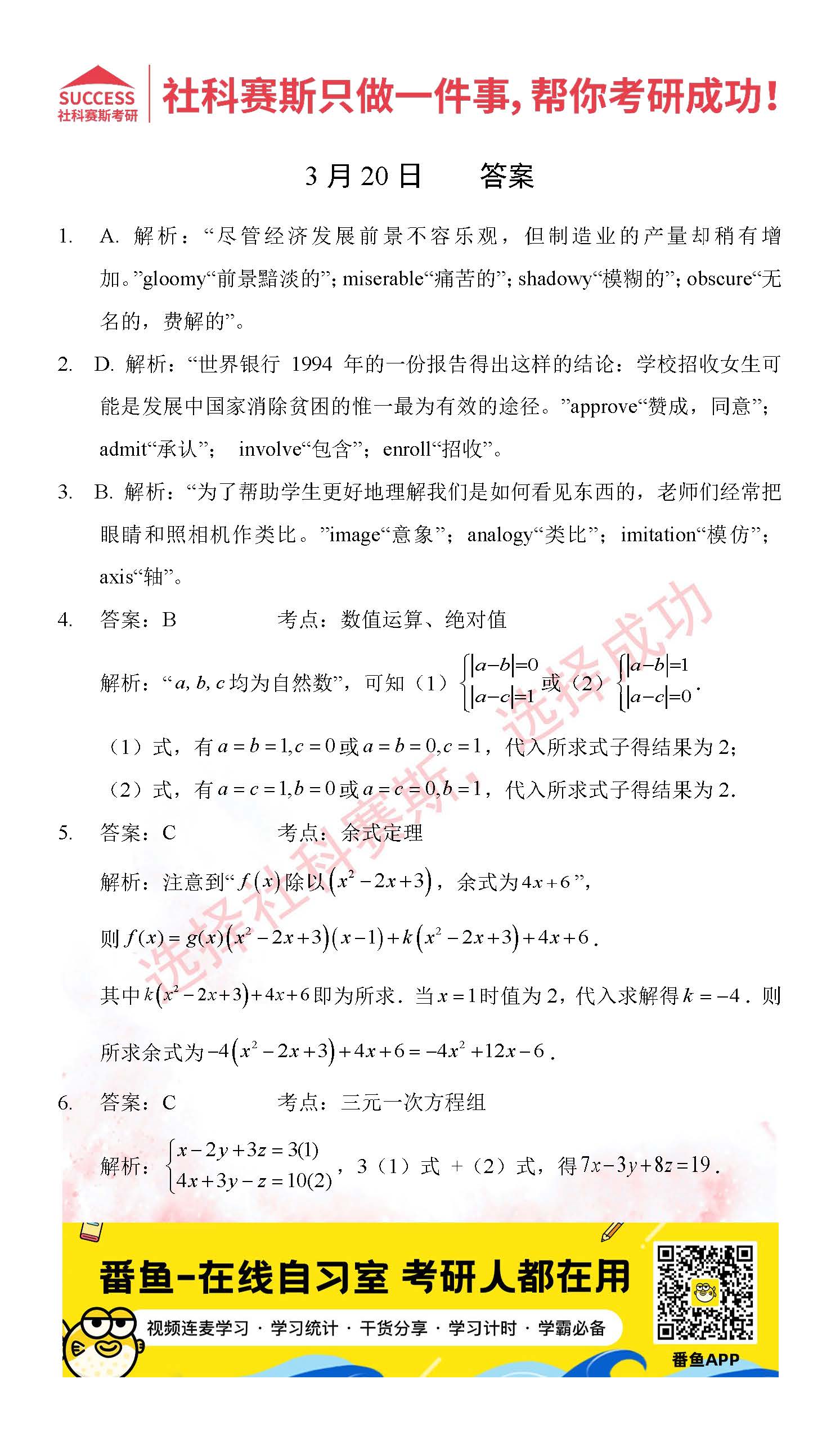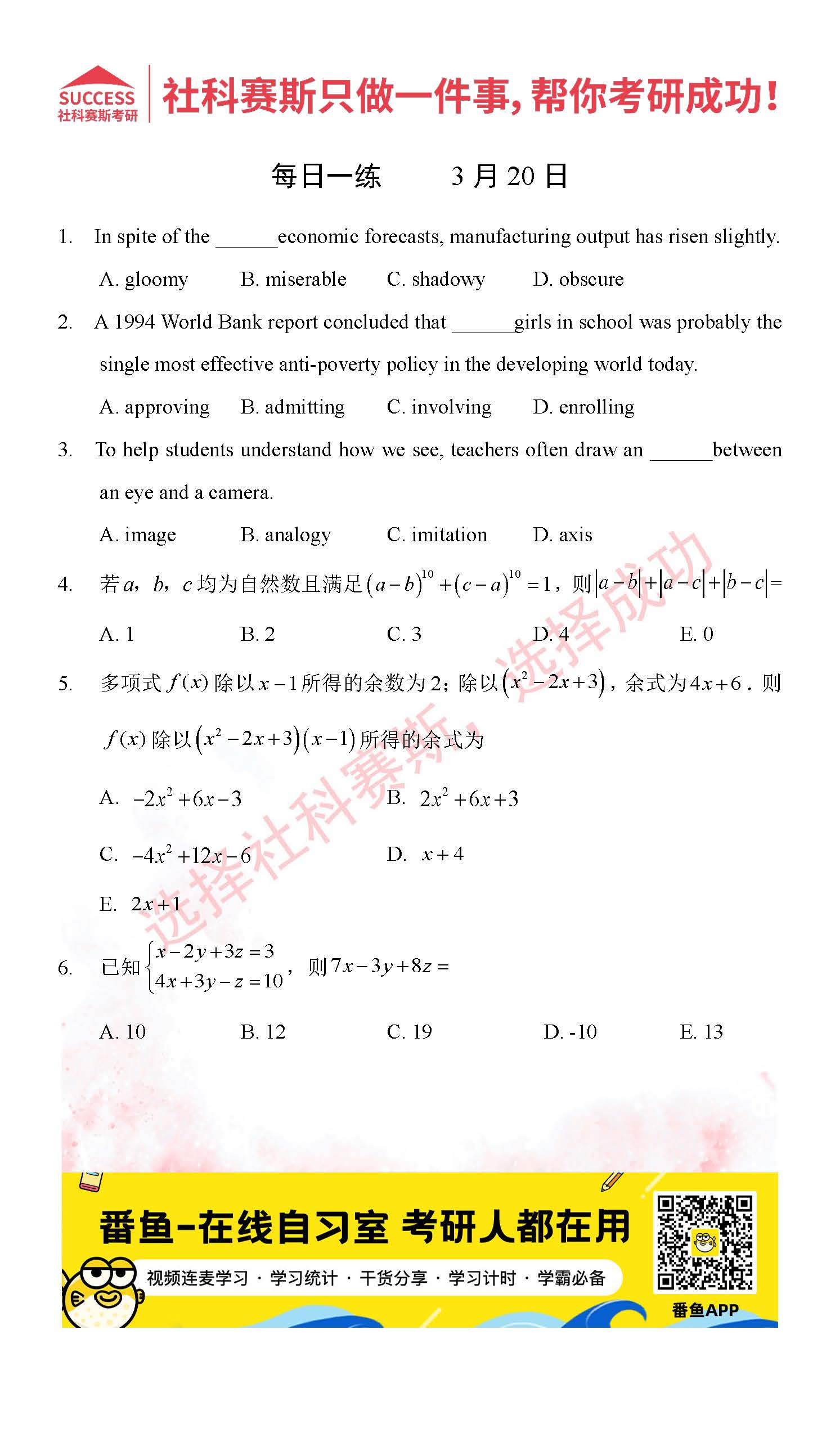 2022考研每日一練:3月20日管理類聯(lián)考每日一練及答案