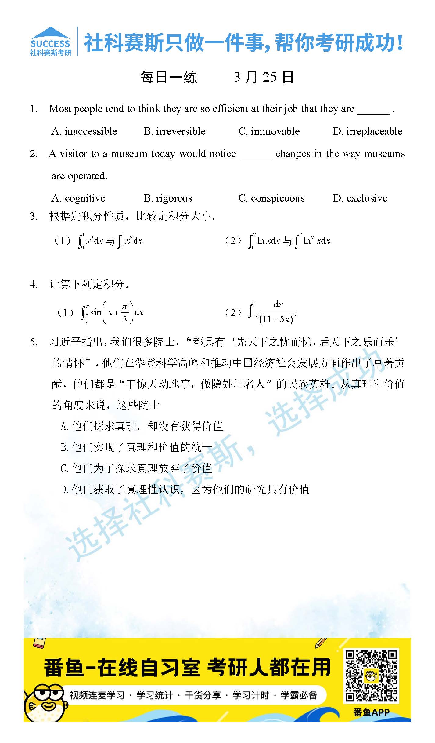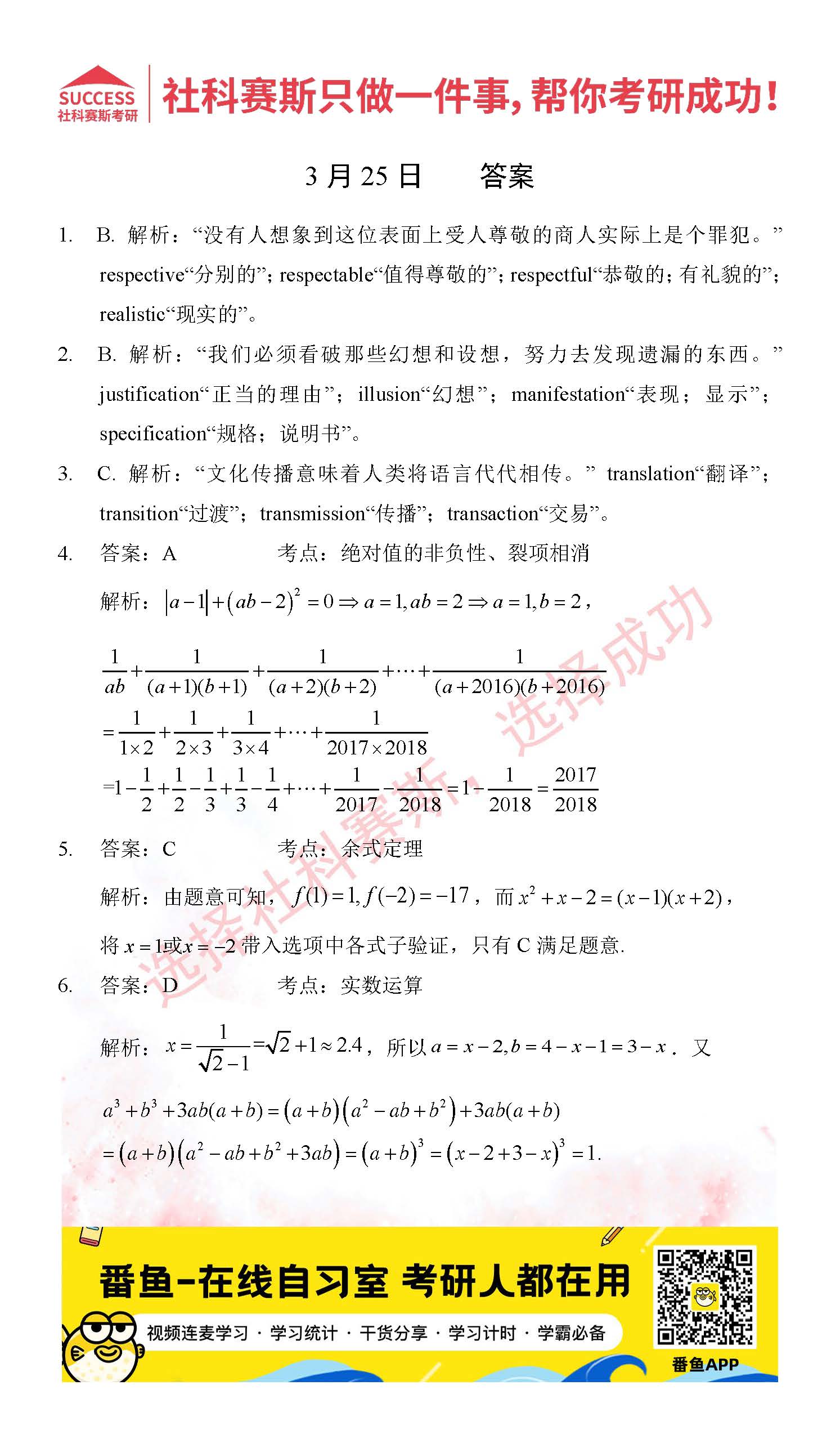 ?以上就是社科賽斯考研網(wǎng)小編為大家整理2022考研每日一練:3月25日管理類聯(lián)考每日一練及答案的全部內(nèi)容,希望各位考生堅(jiān)持利用起來,更多每日一練內(nèi)容請持續(xù)關(guān)注社科賽斯考研網(wǎng)。