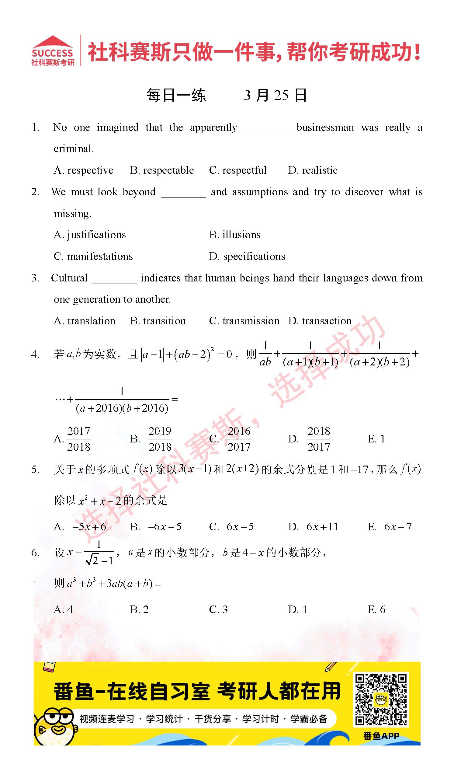 2022考研每日一練:3月25日管理類聯(lián)考每日一練及答案