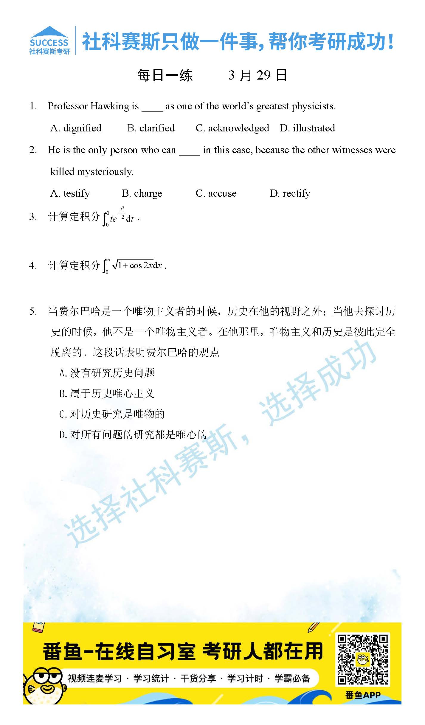 2022考研每日一練:3月29日管理類聯考每日一練及答案