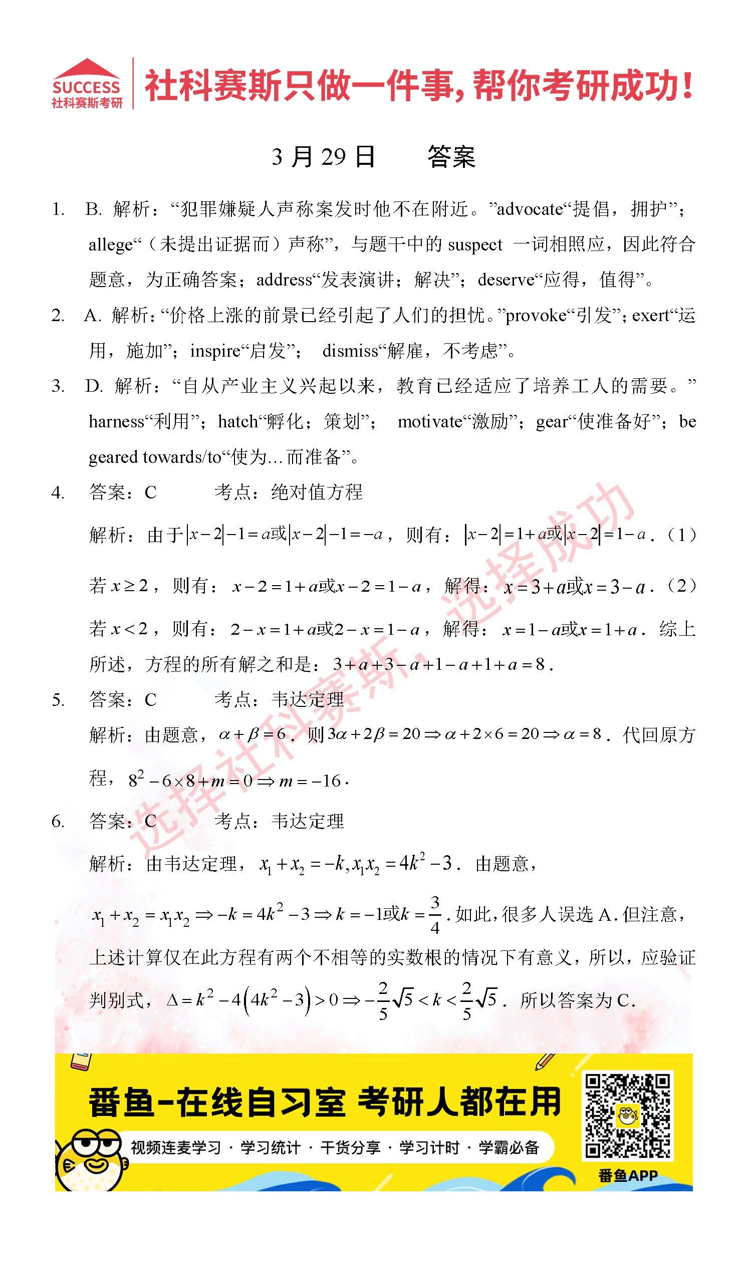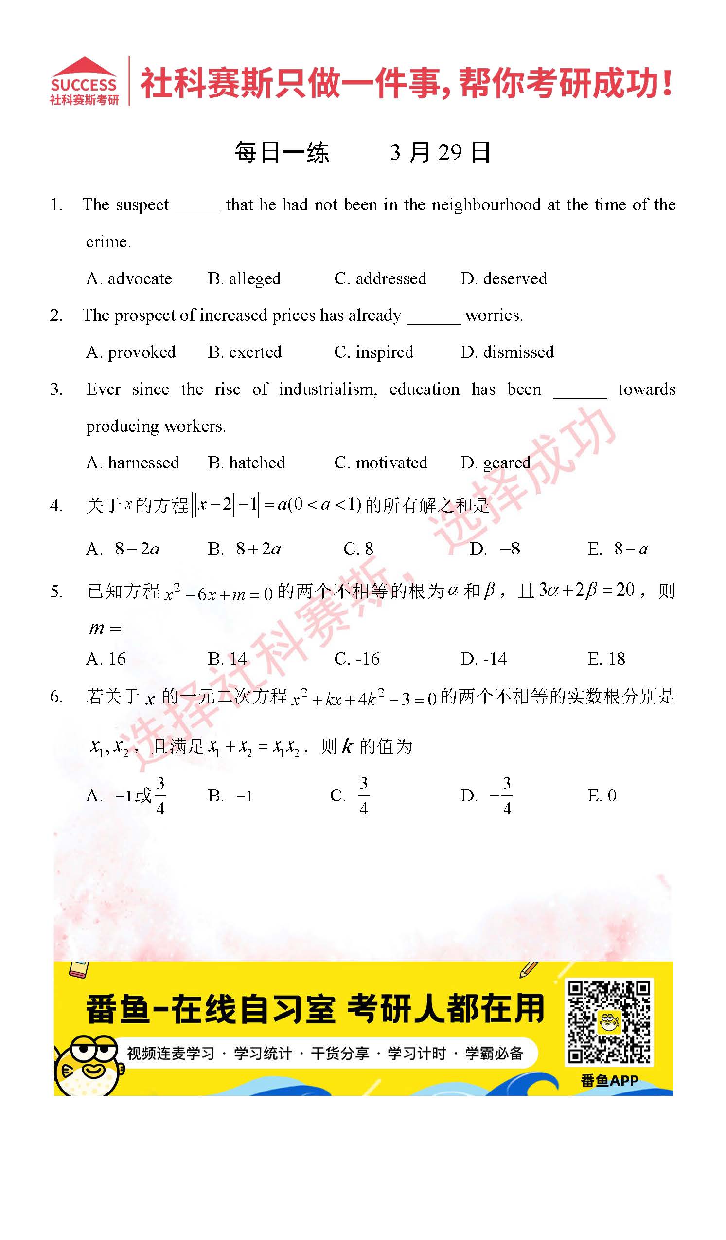 ?以上就是社科賽斯考研網小編為大家整理2022考研每日一練:3月29日管理類聯考每日一練及答案的全部內容,希望各位考生堅持利用起來,更多每日一練內容請持續(xù)關注社科賽斯考研網