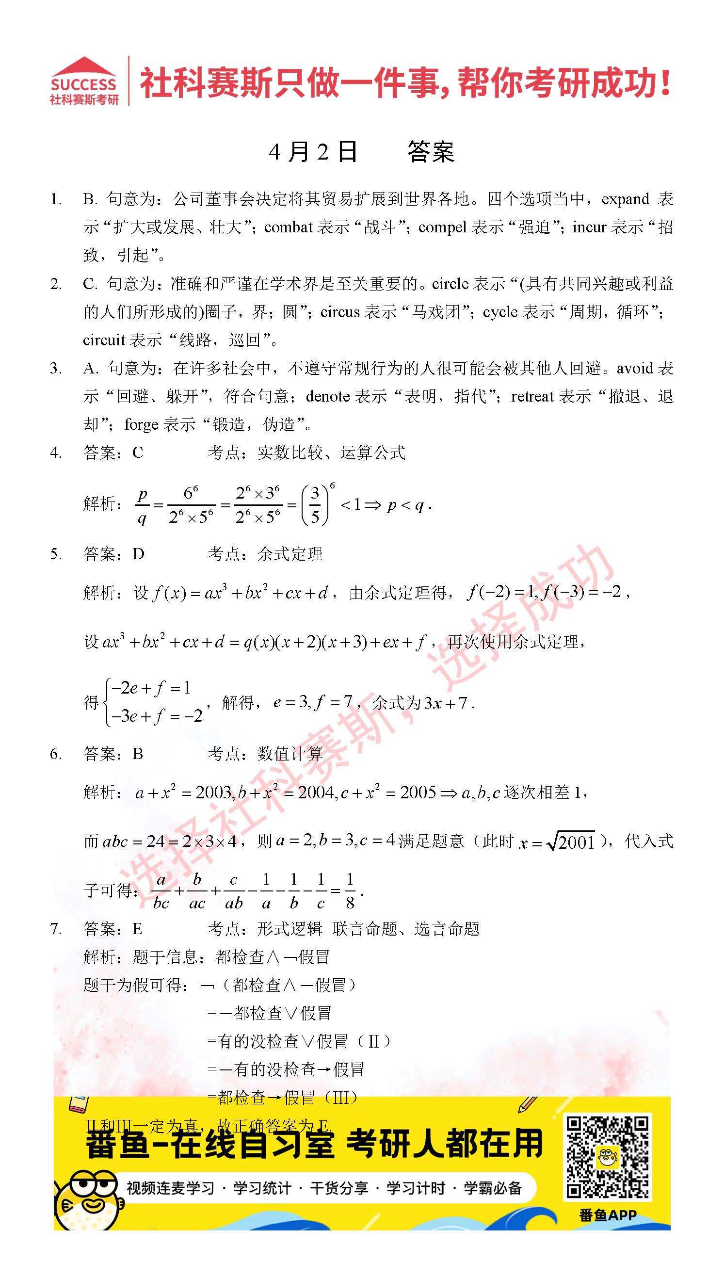 ?以上就是社科賽斯考研網(wǎng)小編為大家整理2022考研每日一練:4月2日管理類聯(lián)考每日一練及答案的全部內(nèi)容,希望各位考生堅(jiān)持利用起來,更多每日一練內(nèi)容請(qǐng)持續(xù)關(guān)注社科賽斯考研網(wǎng)。