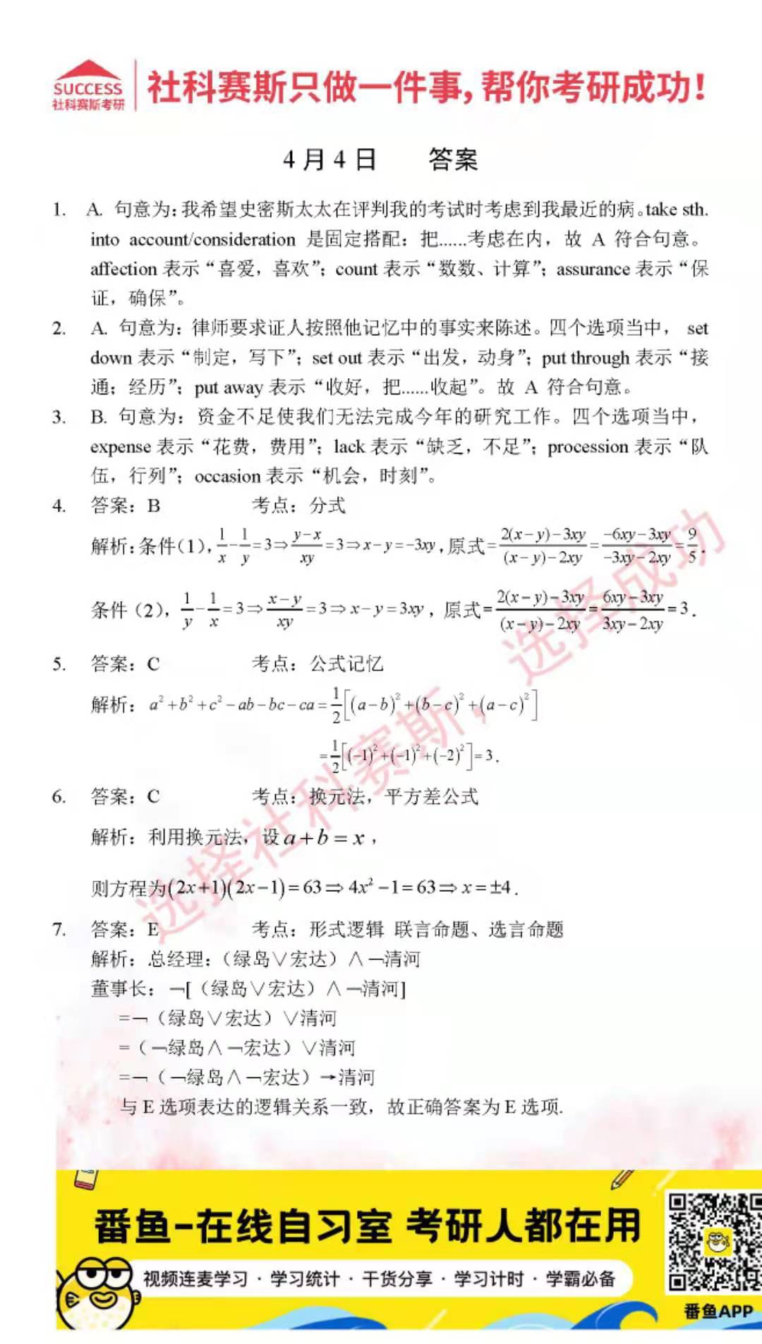 ?以上就是社科賽斯考研網(wǎng)小編為大家整理2022考研每日一練:4月4日管理類聯(lián)考每日一練及答案的全部內(nèi)容,希望各位考生堅持利用起來,更多每日一練內(nèi)容請持續(xù)關(guān)注社科賽斯考研網(wǎng)