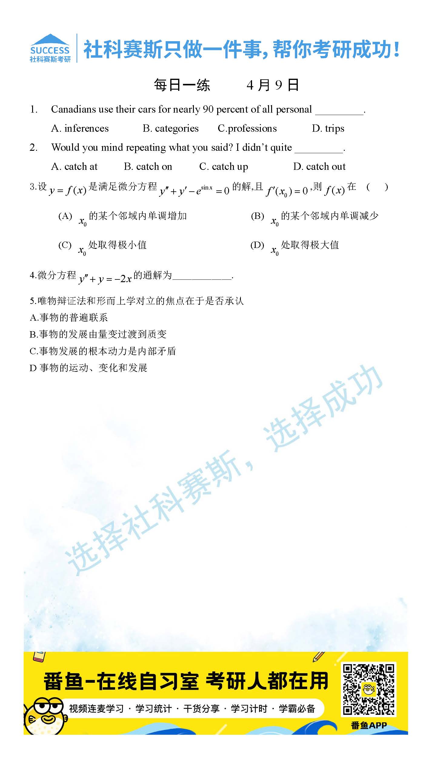 2022考研每日一練:4月9日管理類聯(lián)考每日一練及答案