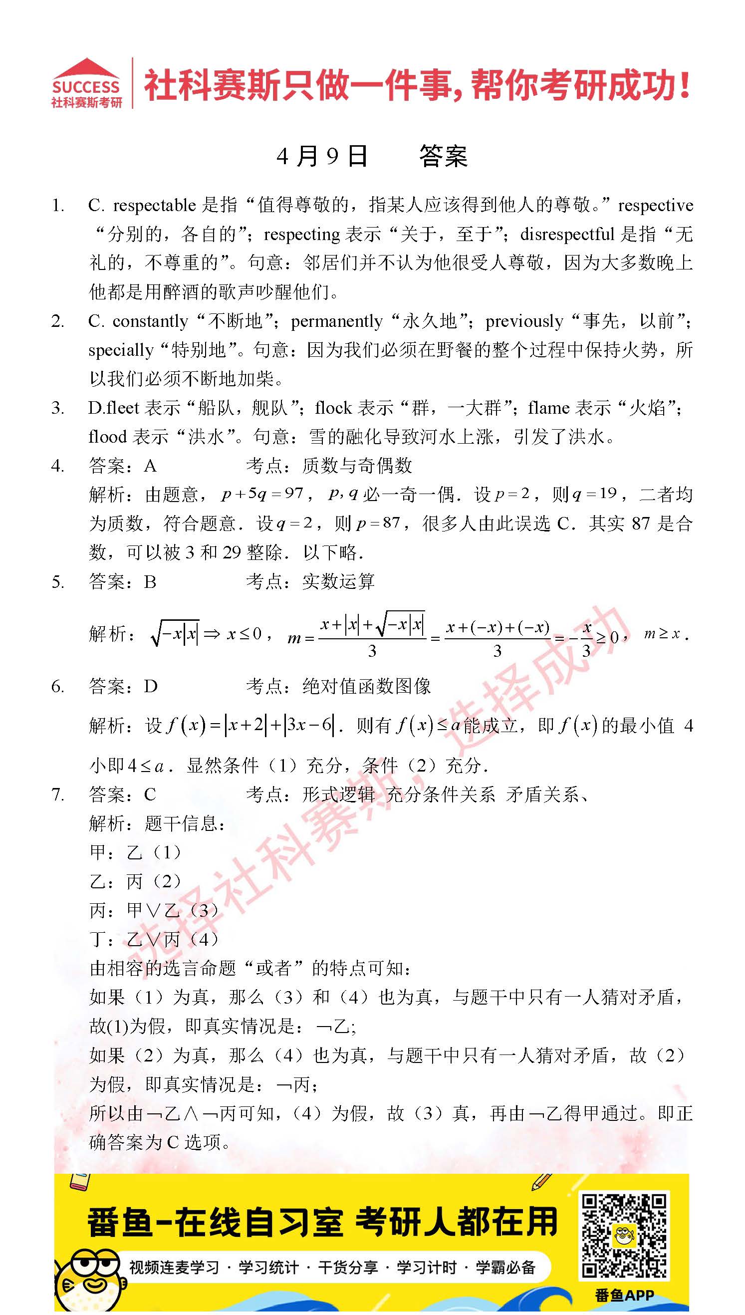 ?以上就是社科賽斯考研網(wǎng)小編為大家整理2022考研每日一練:4月9日管理類聯(lián)考每日一練及答案的全部內(nèi)容,希望各位考生堅持利用起來,更多每日一練內(nèi)容請持續(xù)關(guān)注社科賽斯考研網(wǎng)。