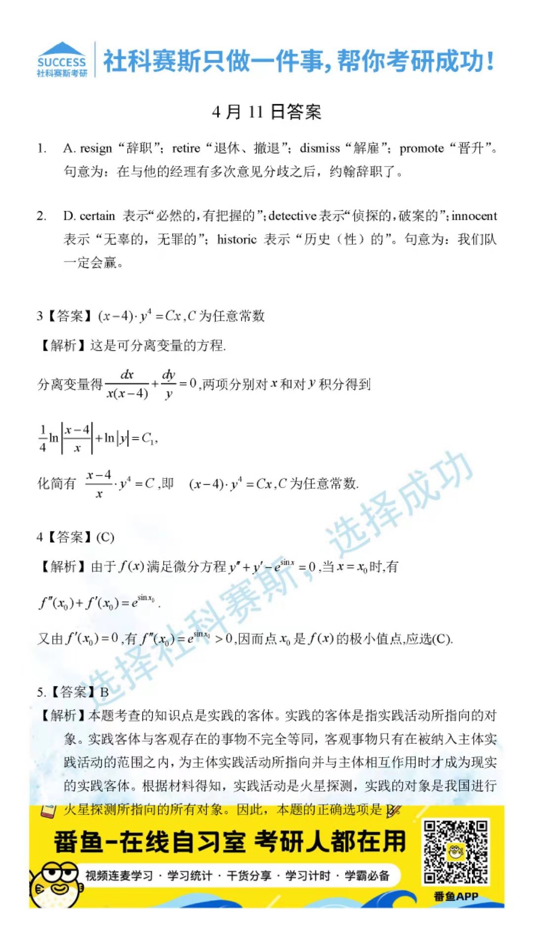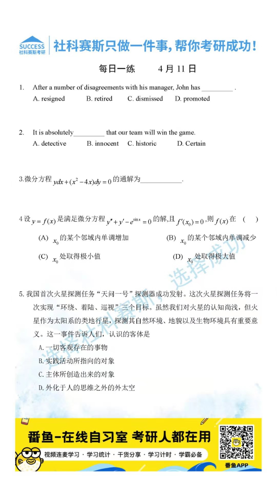?以上就是社科賽斯考研網(wǎng)小編為大家整理2022考研每日一練:4月11日管理類聯(lián)考每日一練及答案的全部?jī)?nèi)容,希望各位考生堅(jiān)持利用起來(lái),更多每日一練內(nèi)容請(qǐng)持續(xù)關(guān)注社科賽斯考研網(wǎng)。