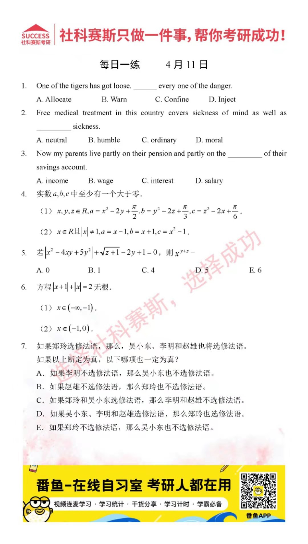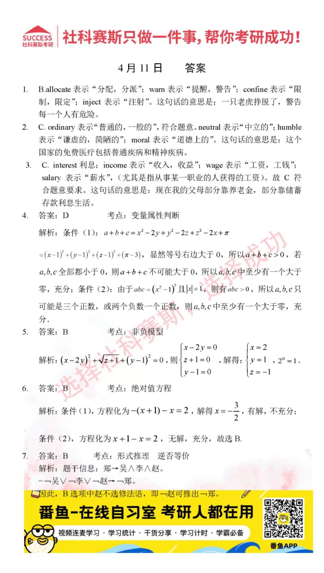 2022考研每日一練:4月11日管理類聯(lián)考每日一練及答案