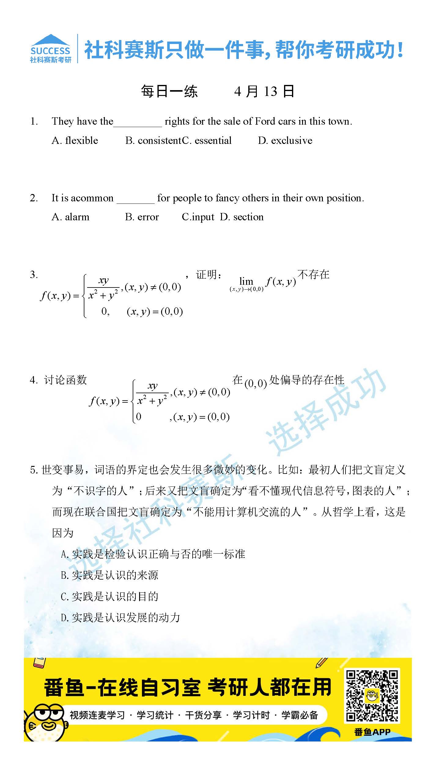?以上就是社科賽斯考研網(wǎng)小編為大家整理2022考研每日一練:4月13日管理類聯(lián)考每日一練及答案的全部?jī)?nèi)容,希望各位考生堅(jiān)持利用起來(lái),更多每日一練內(nèi)容請(qǐng)持續(xù)關(guān)注社科賽斯考研網(wǎng)。