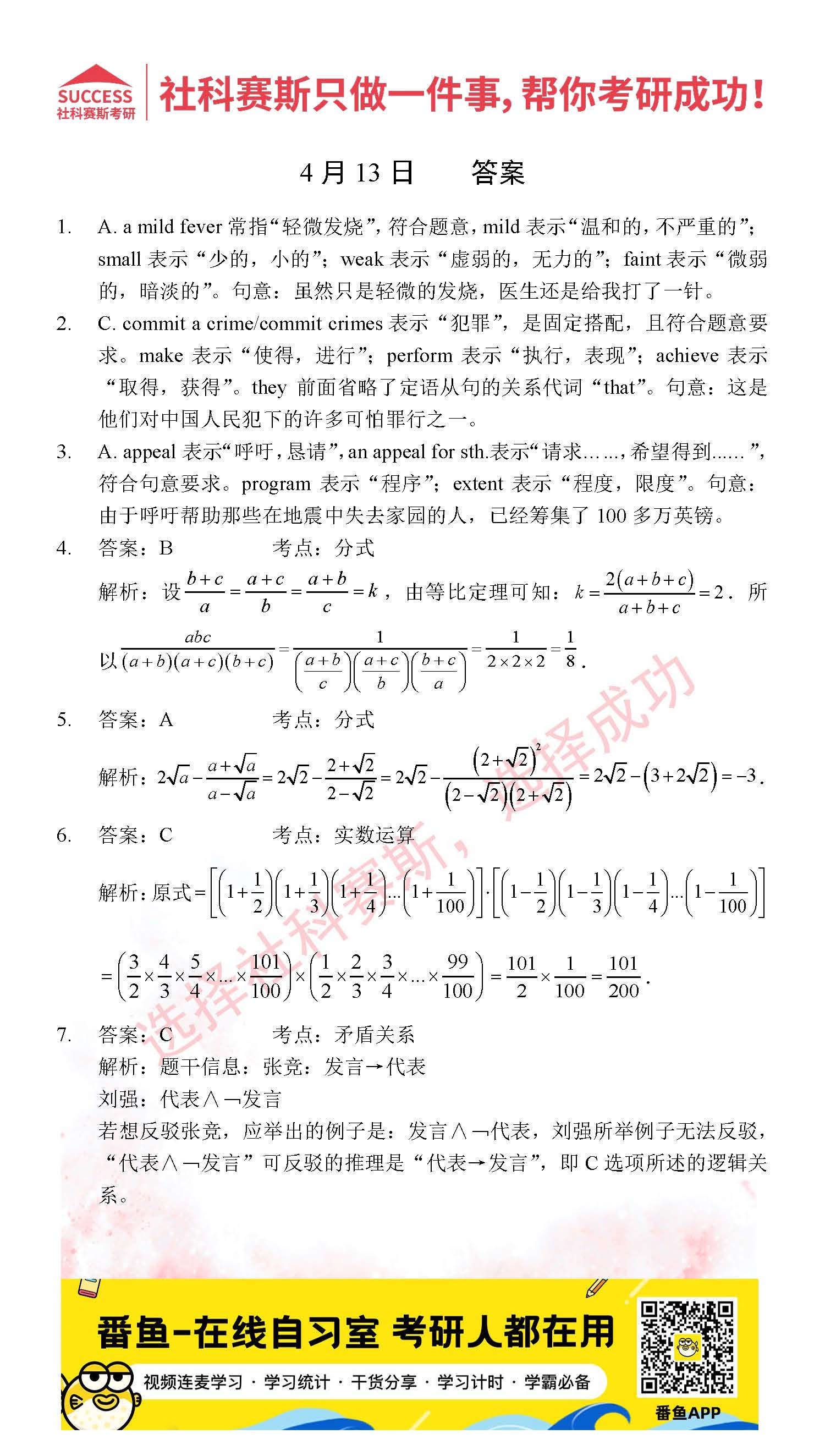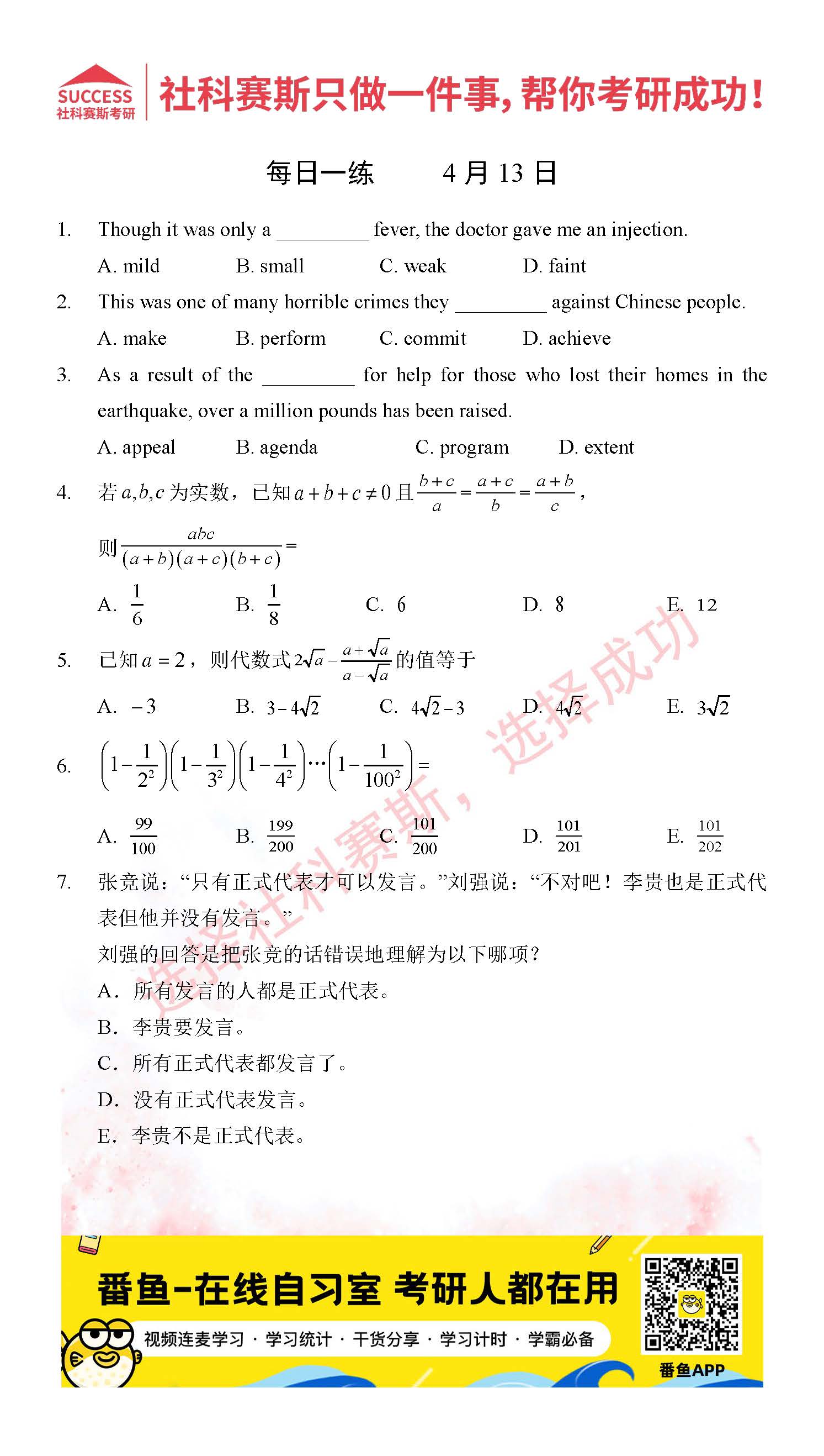 2022考研每日一練:4月13日管理類聯(lián)考每日一練及答案