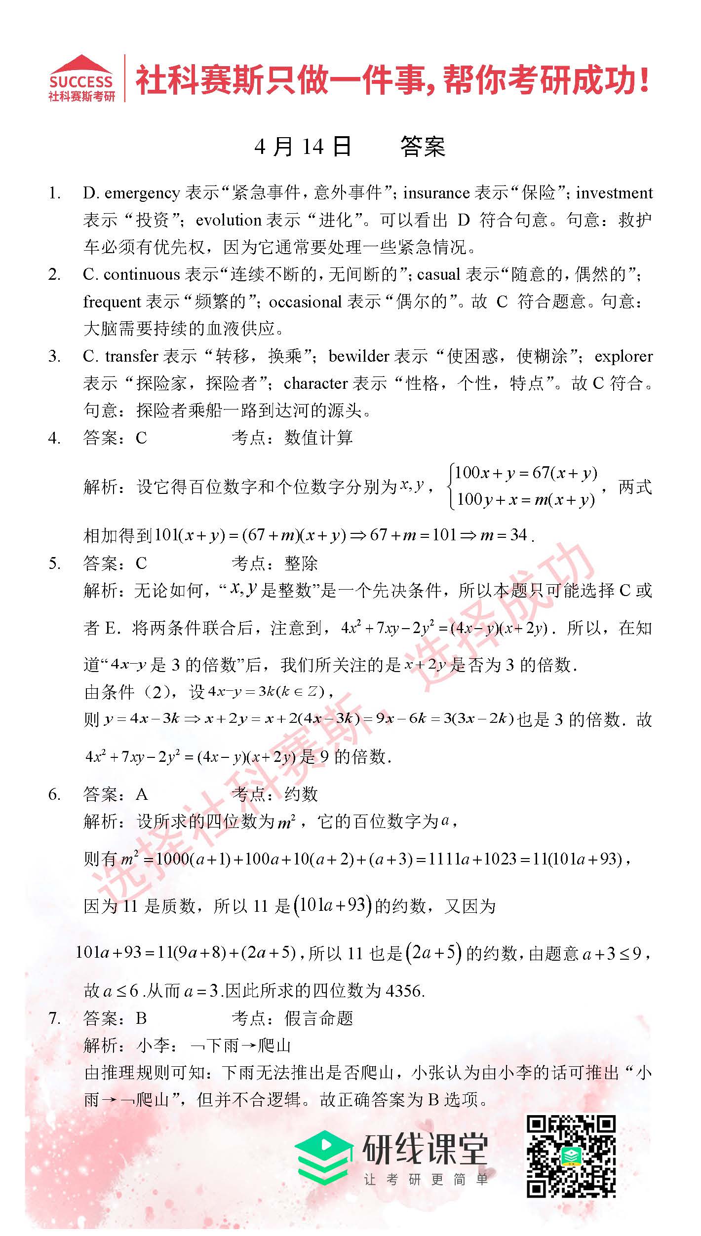?以上就是社科賽斯考研網(wǎng)小編為大家整理2022考研每日一練:4月14日管理類(lèi)聯(lián)考每日一練及答案的全部?jī)?nèi)容,希望各位考生堅(jiān)持利用起來(lái),更多每日一練內(nèi)容請(qǐng)持續(xù)關(guān)注社科賽斯考研網(wǎng)