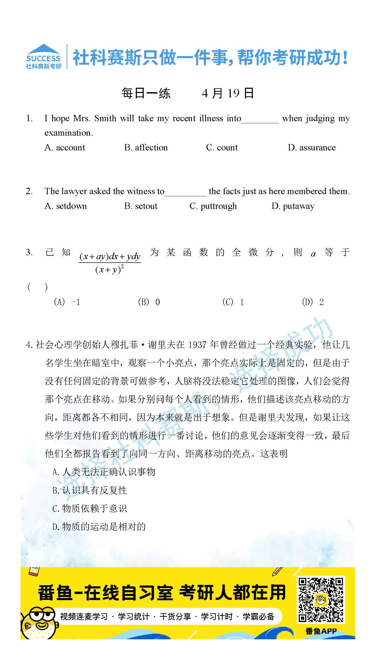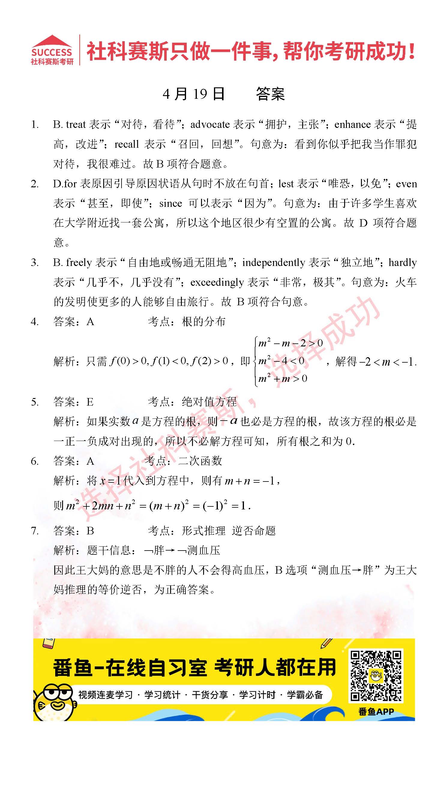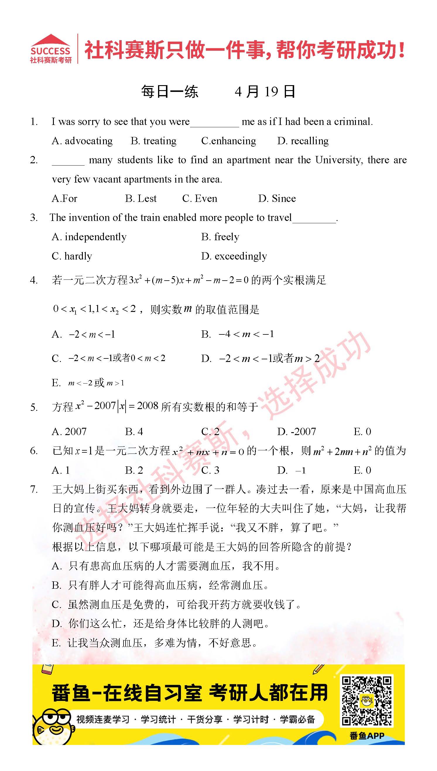 2022考研每日一練:4月19日管理類聯(lián)考每日一練及答案