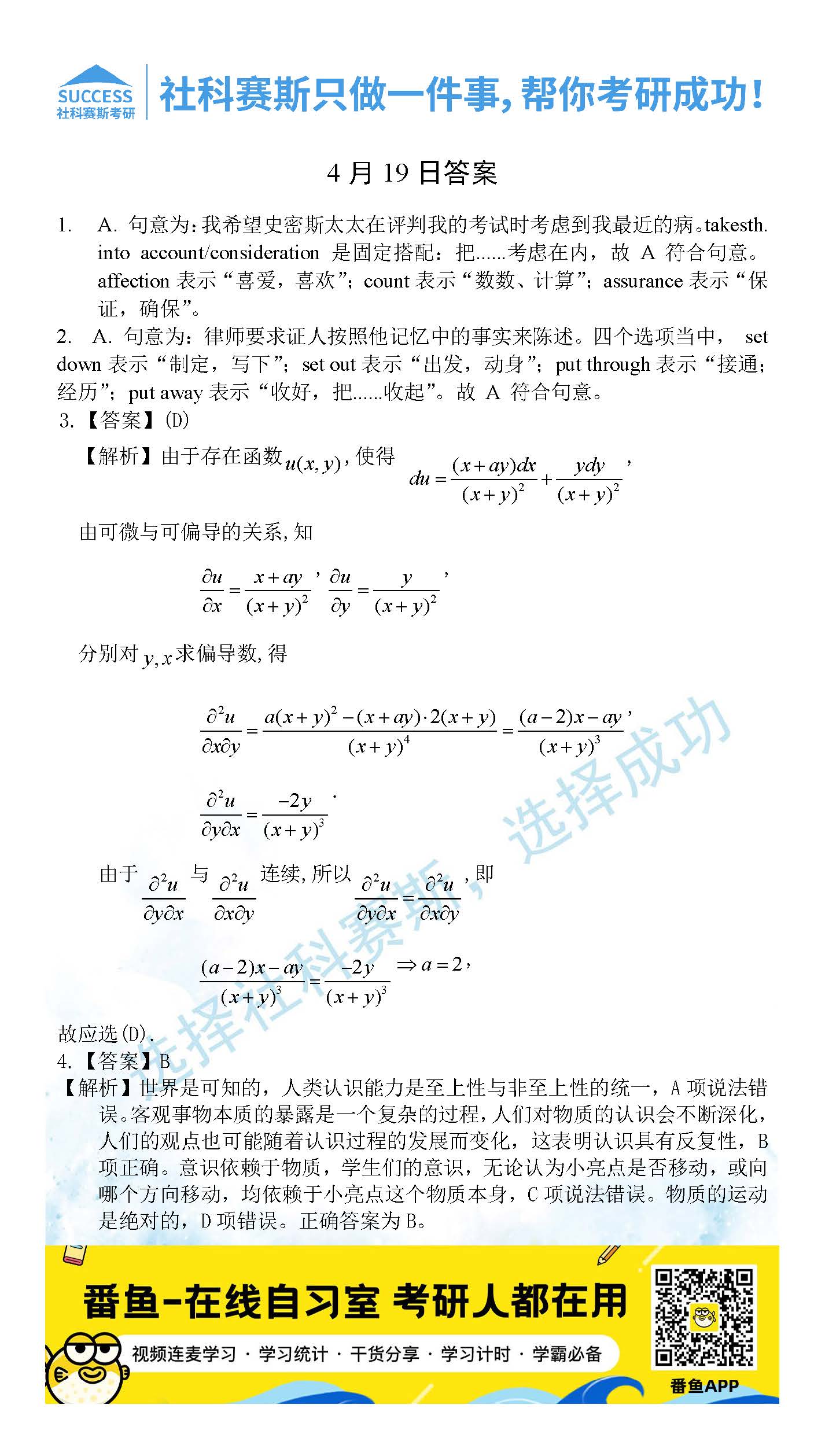 ?以上就是社科賽斯考研網(wǎng)小編為大家整理2022考研每日一練:4月19日管理類聯(lián)考每日一練及答案的全部內(nèi)容,希望各位考生堅持利用起來,更多每日一練內(nèi)容請持續(xù)關(guān)注社科賽斯考研網(wǎng)