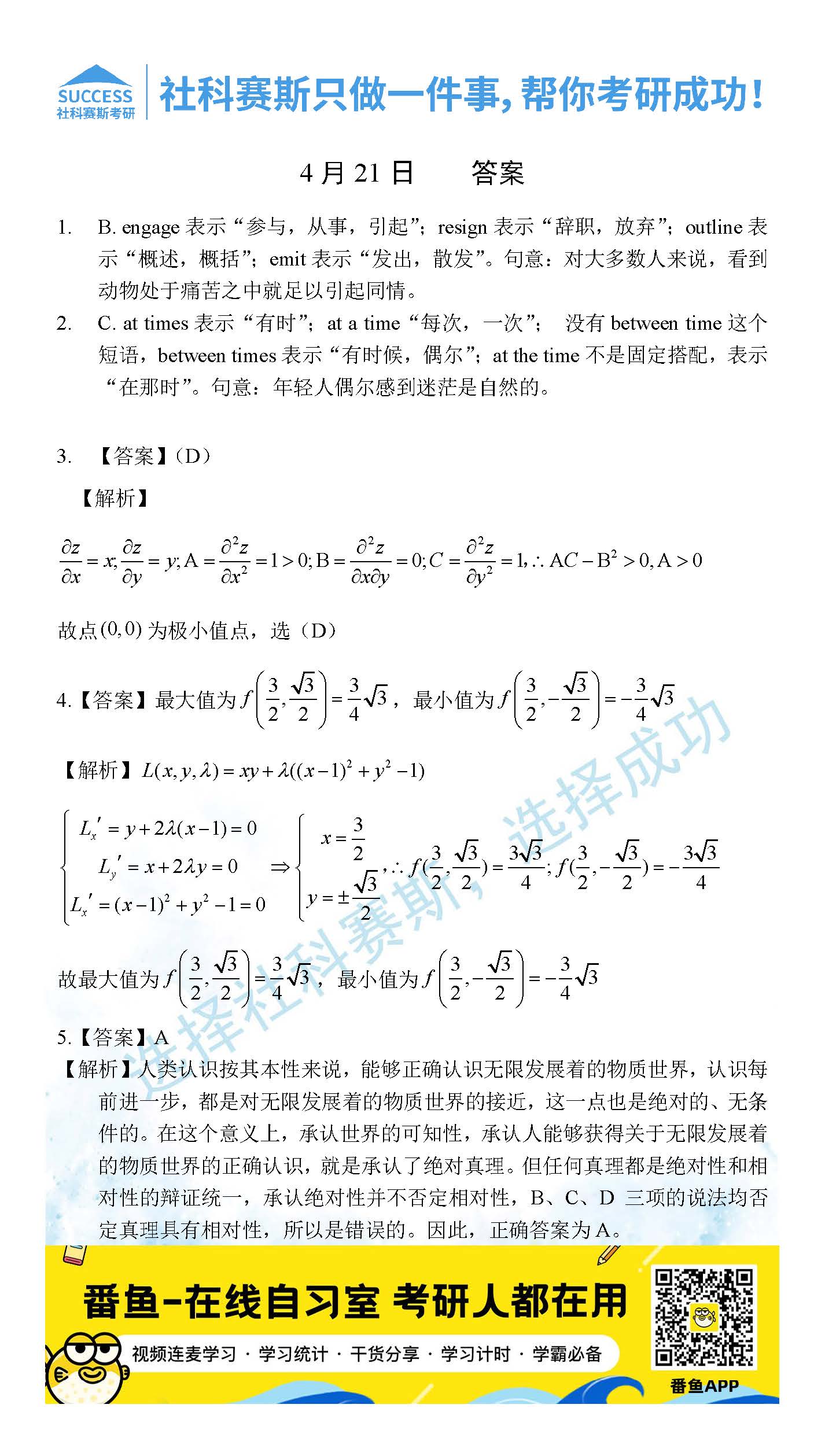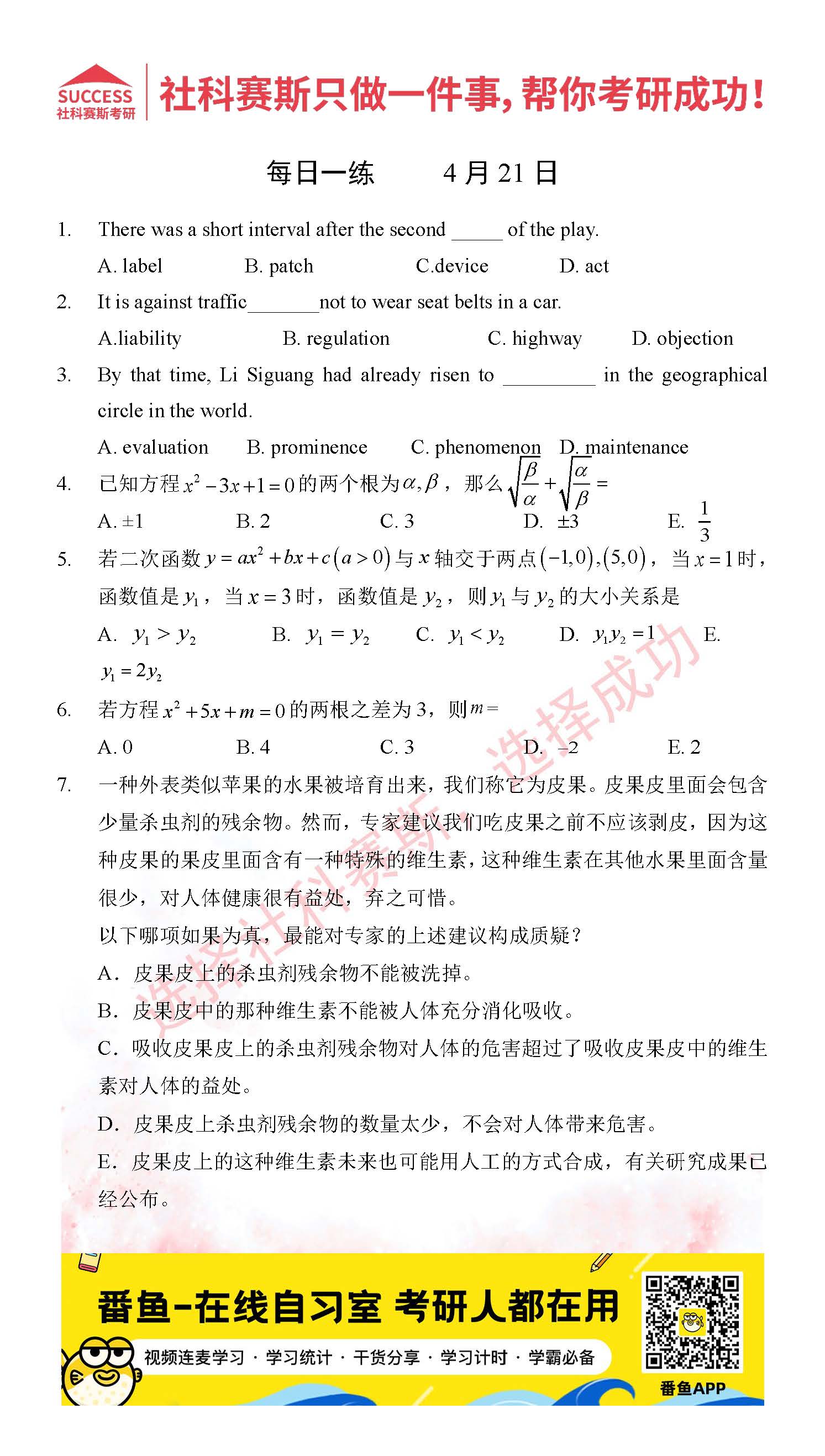 ?以上就是社科賽斯考研網(wǎng)小編為大家整理2022考研每日一練:4月21日管理類聯(lián)考每日一練及答案的全部內(nèi)容,希望各位考生堅持利用起來,更多每日一練內(nèi)容請持續(xù)關(guān)注社科賽斯考研網(wǎng)。