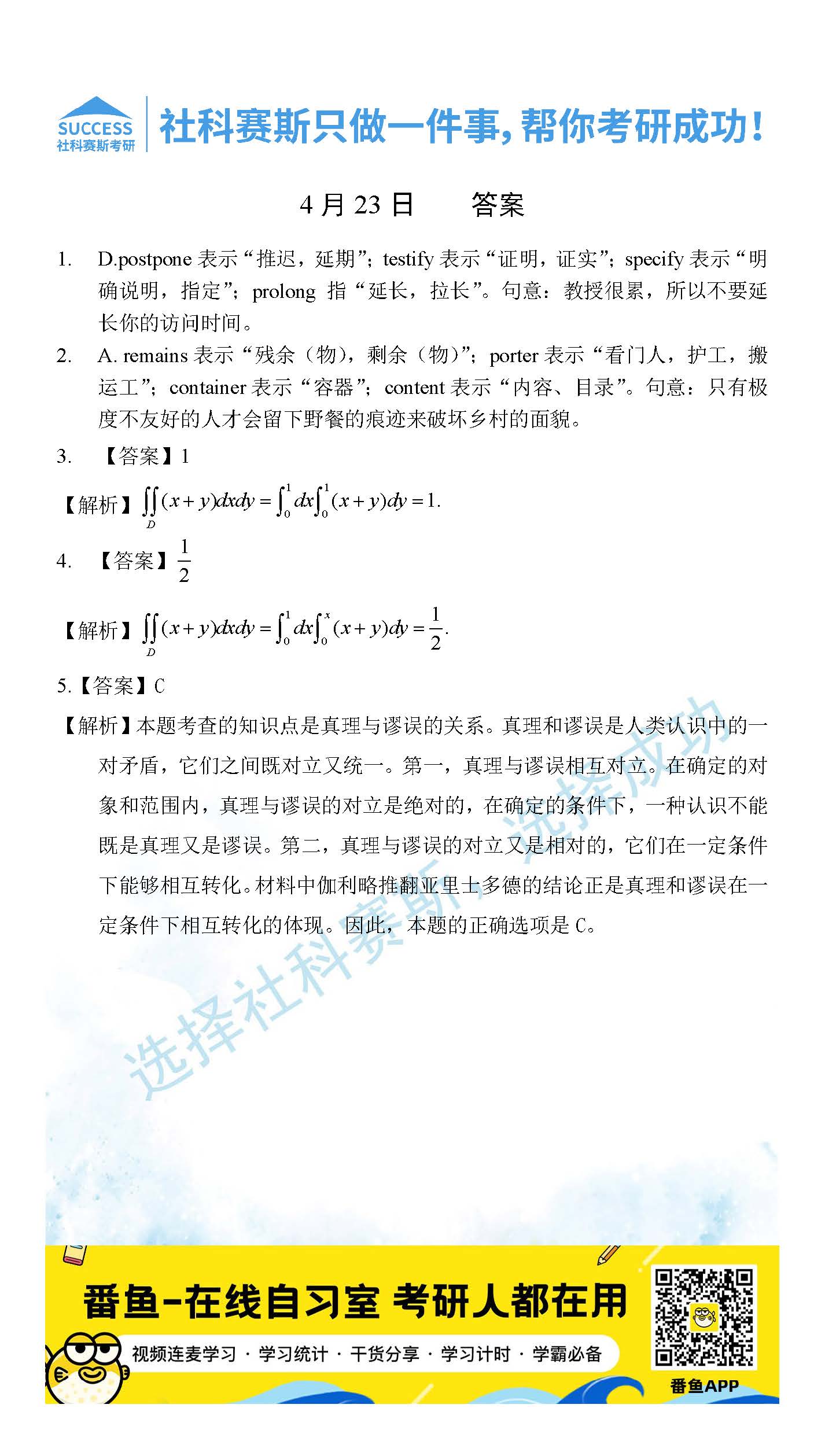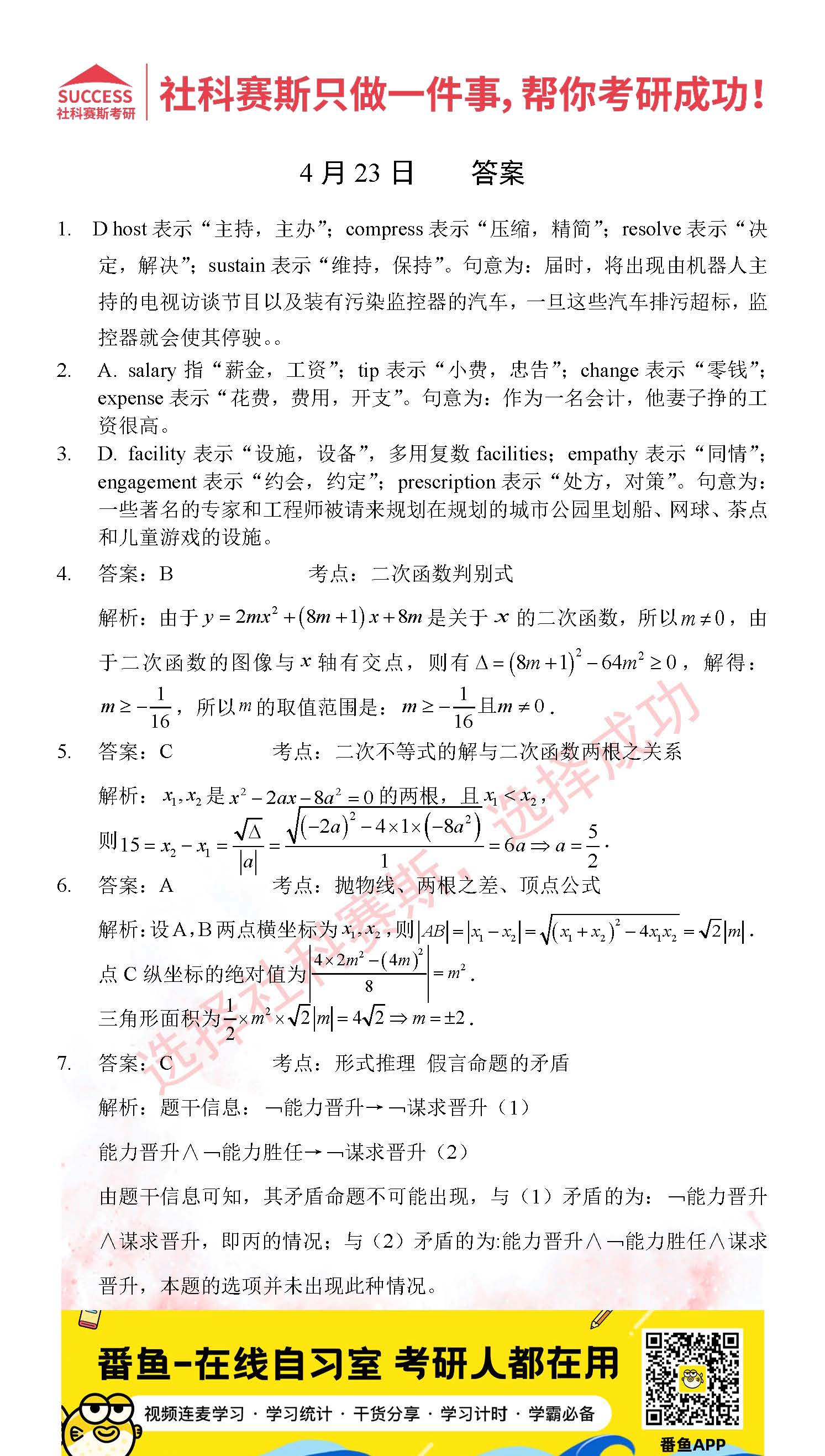 以上就是社科賽斯考研網(wǎng)小編為大家整理2022考研每日一練:4月23日管理類聯(lián)考每日一練及答案的全部內(nèi)容,希望各位考生堅持利用起來,更多每日一練內(nèi)容請持續(xù)關(guān)注社科賽斯考研網(wǎng)。